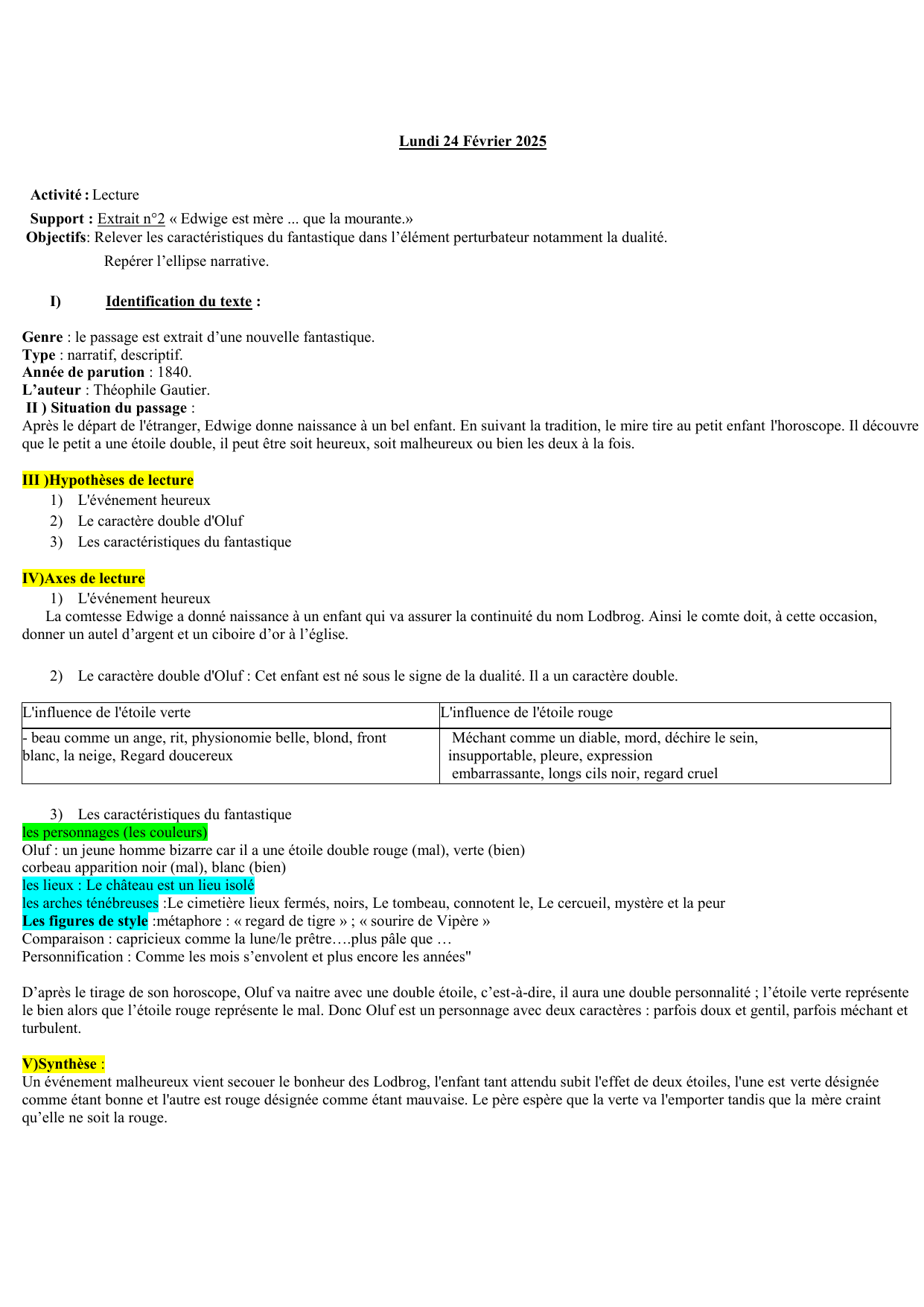 Objectifs: Relever les caractéristiques du fantastique dans l’élément perturbateur notamment la dualité.