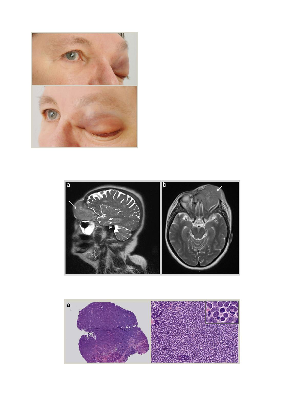 left peri-orbital soft tissue lesion with proptosis. Her past medical