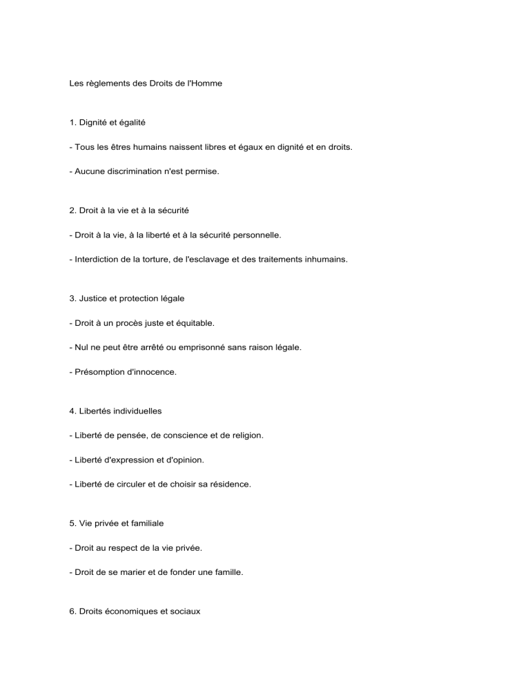 Les règlements des Droits de l'Homme