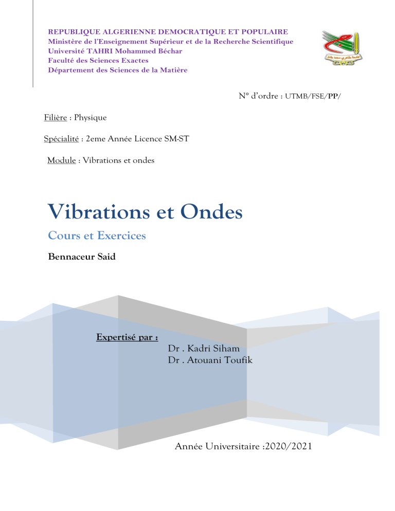 Le présent polycopié, intitulé : « Vibrations et Ondes Cours et
