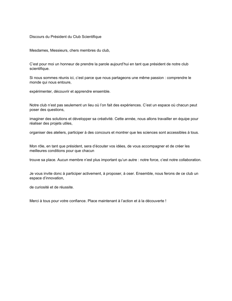 Discours du Président du Club Scientifique
