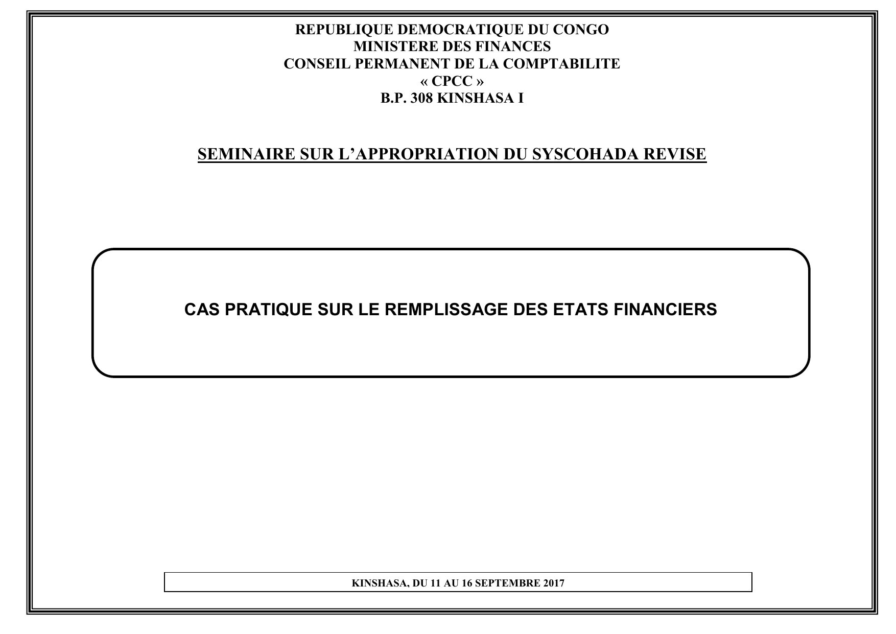 CAS PRATIQUE SUR LE REMPLISSAGE DES ETATS FINANCIERS
