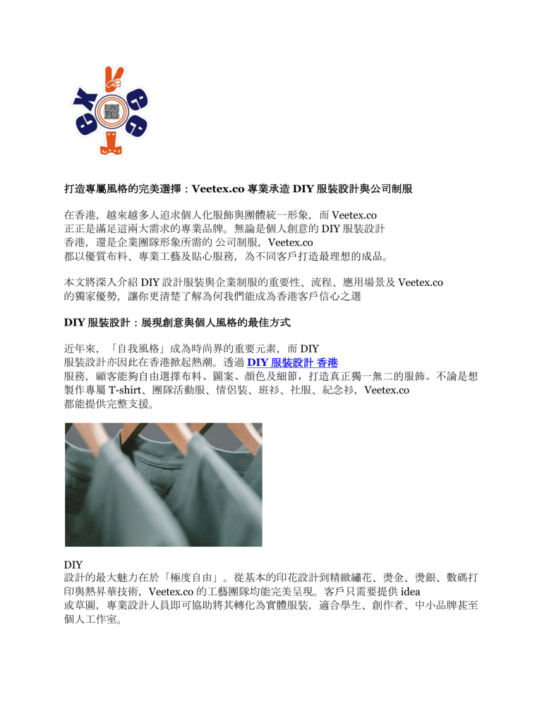 在香港,越來越多人追求個人化服飾與團體統一形象,而 Veetex.co