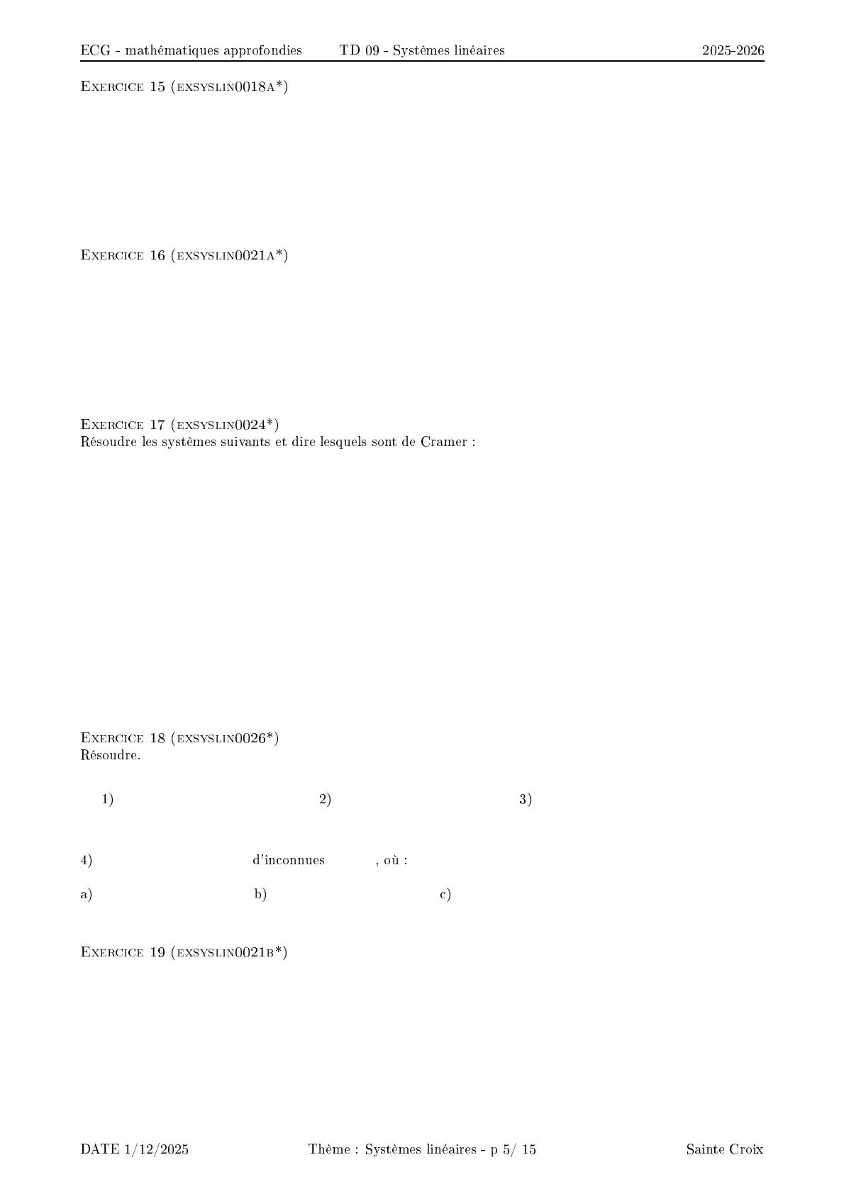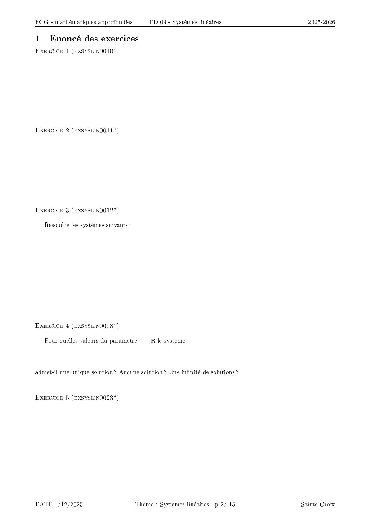 ECG Mathématiques Approfondies: TD 09 Systèmes Linéaires (2025-2026)