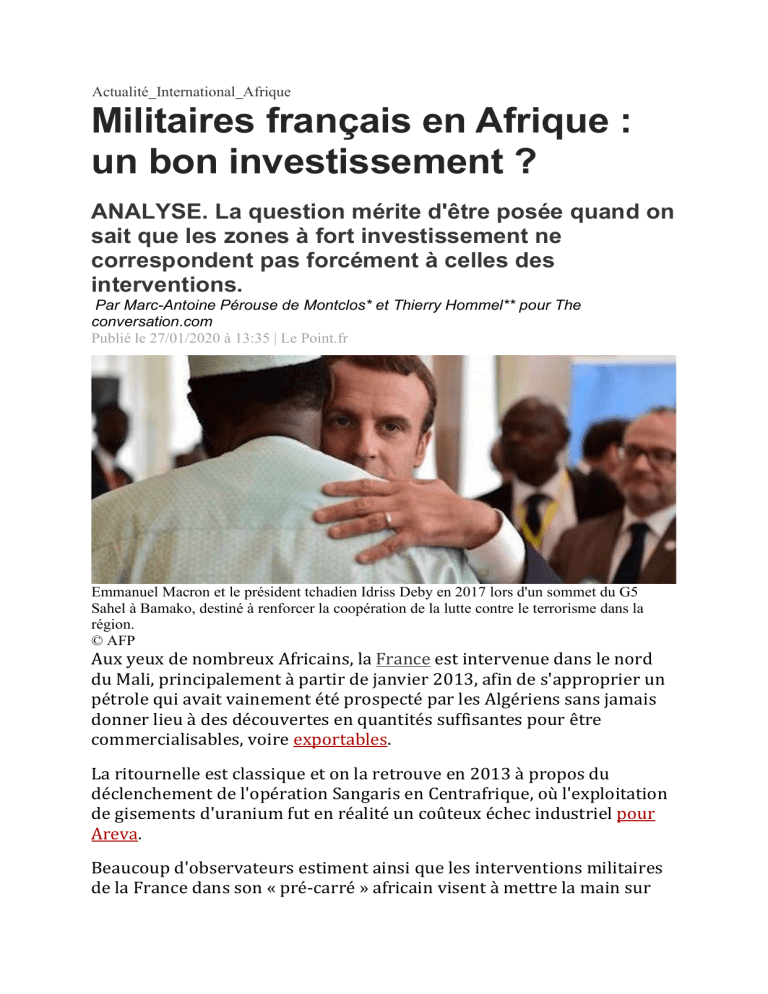 l'intervention militaire au Mali avait été, comme certains le suggèrent,
