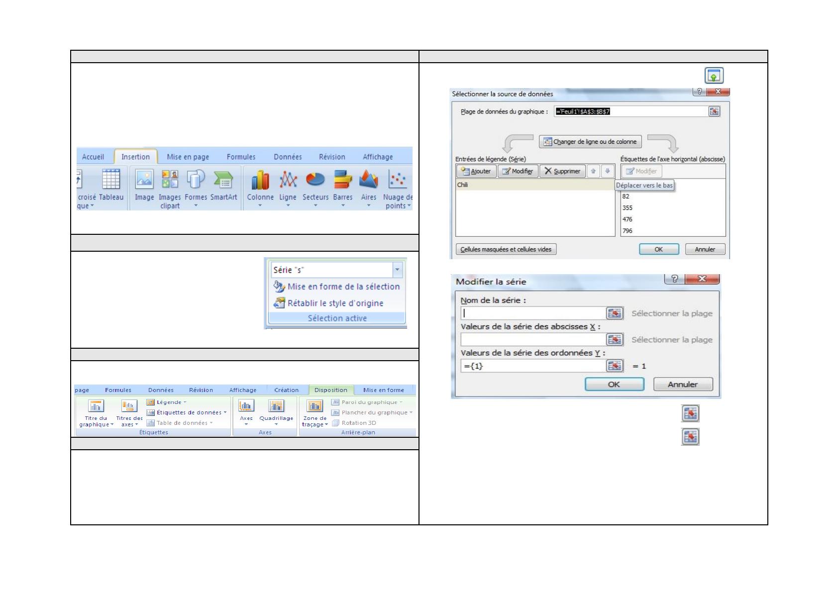 - Sélectionner le graphique, le menu «disposition» apparait. Choisir