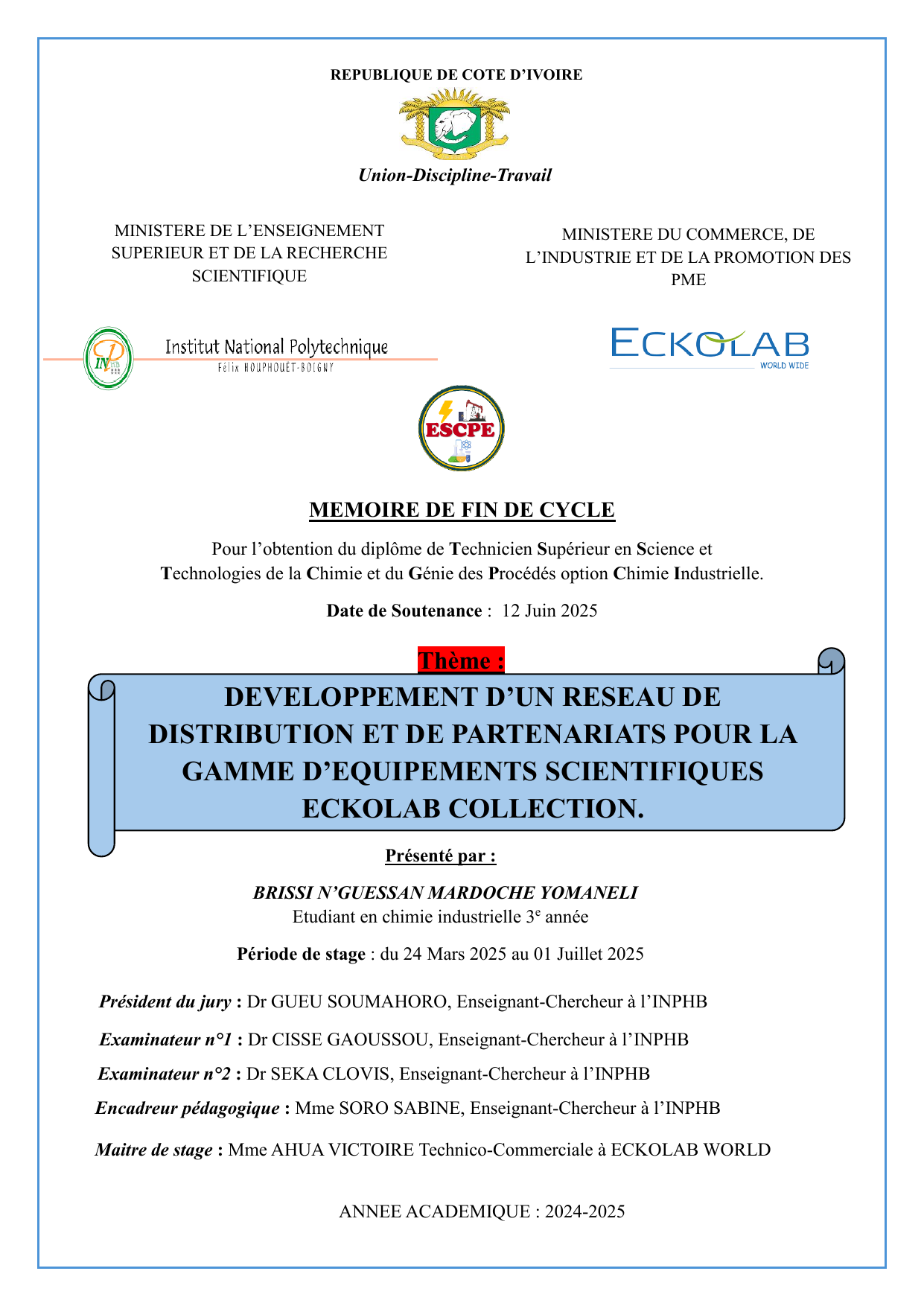 Président du jury : Dr GUEU SOUMAHORO, Enseignant-Chercheur à l’INPHB