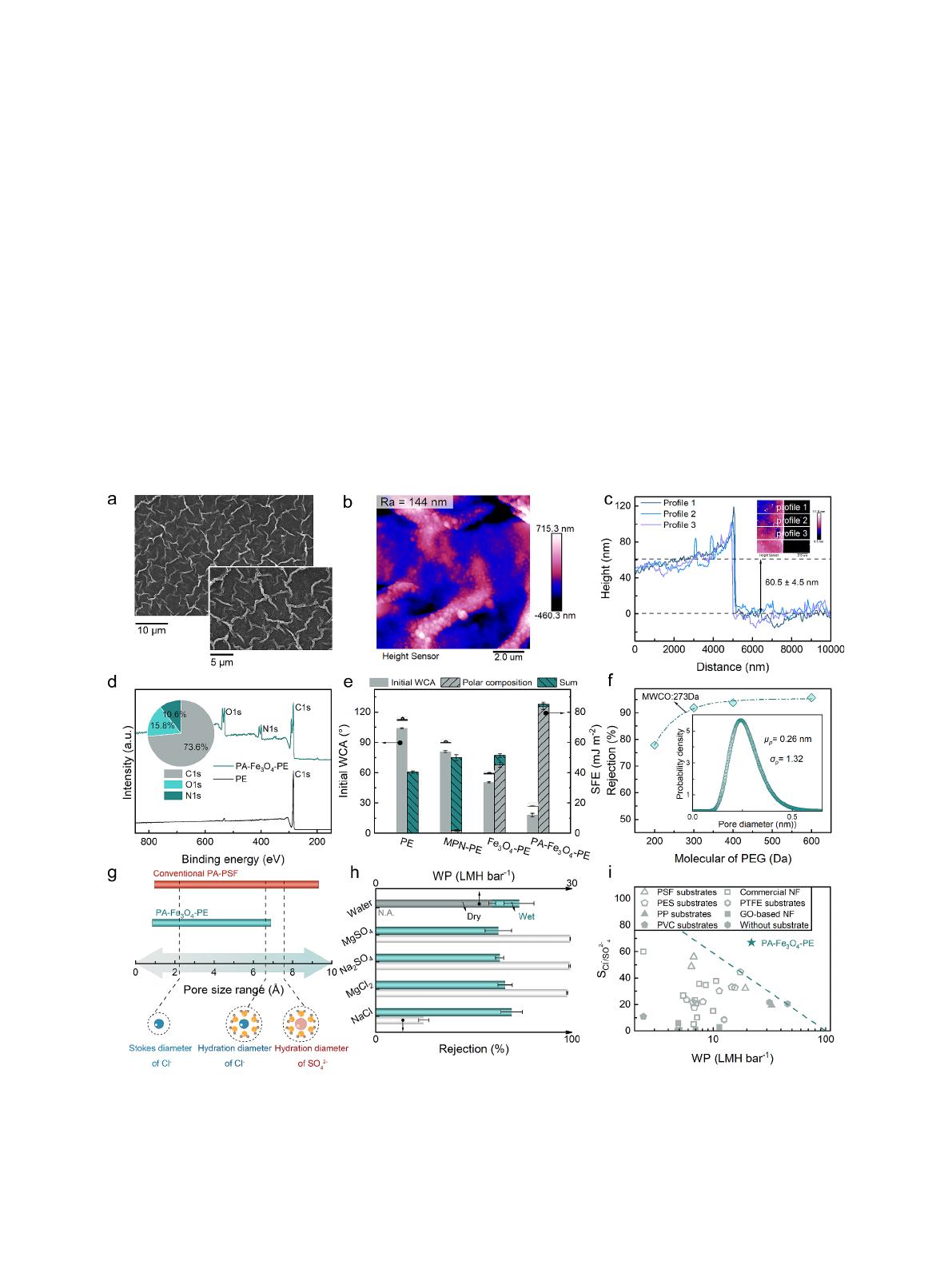 water ux at low pressures (2 bar) (Fig. 2f). The pristine PE substrate