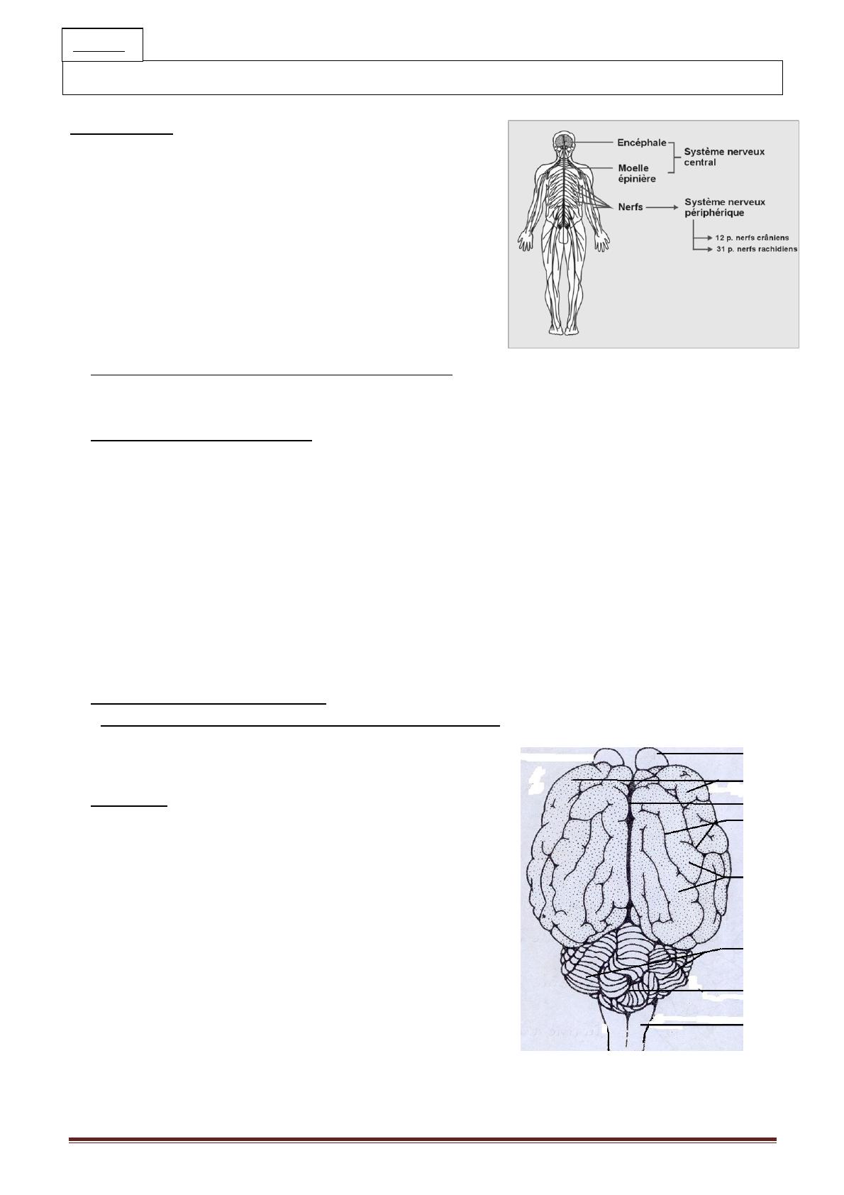 I. LE SYSTÈME NERVEUX CENTRAL (OU CÉRÉBRO-SPINAL) :