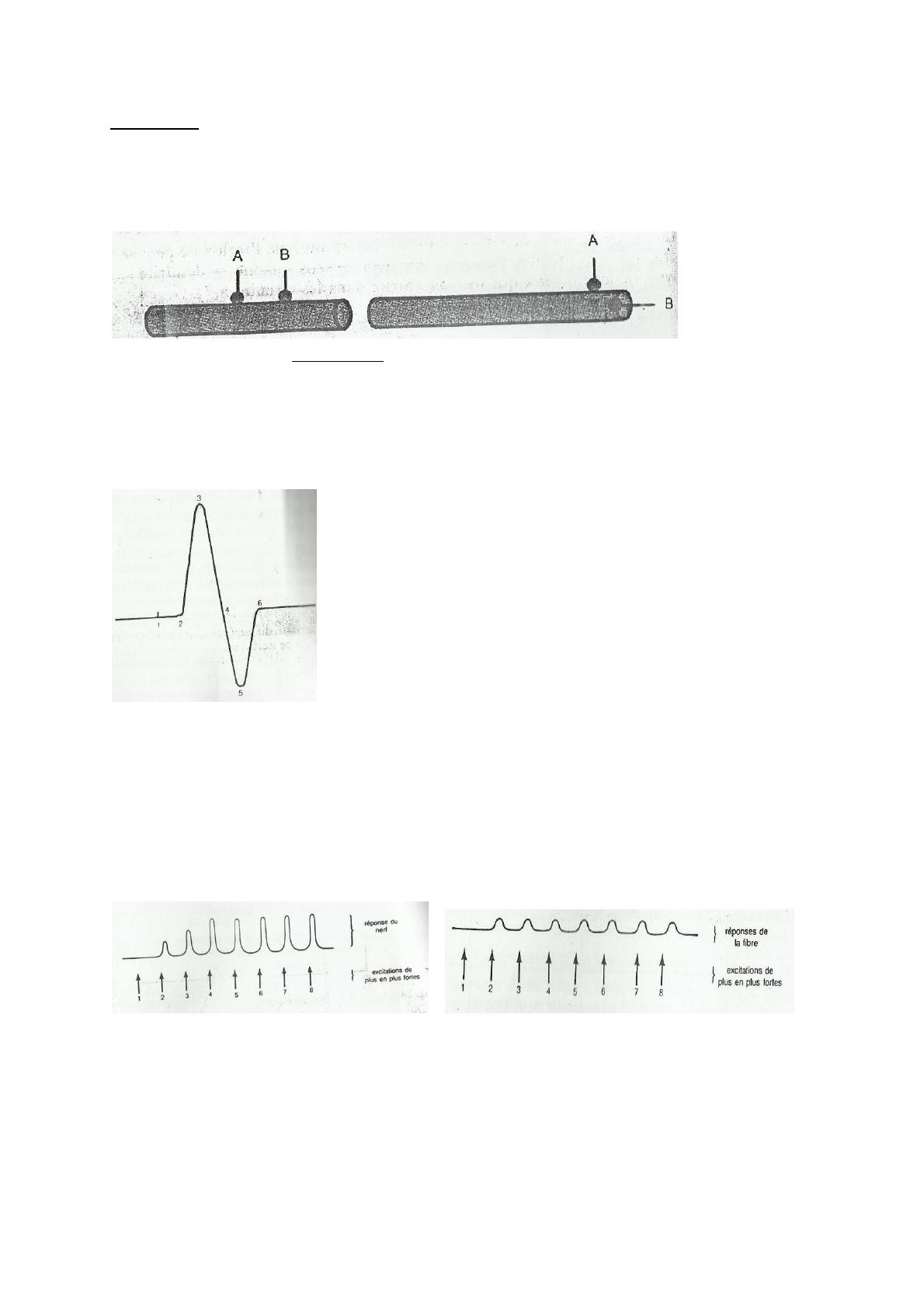 - Pour la fibre : loi des seuils, l’excitabilité, la conductibilité et la loi du tout ou rien