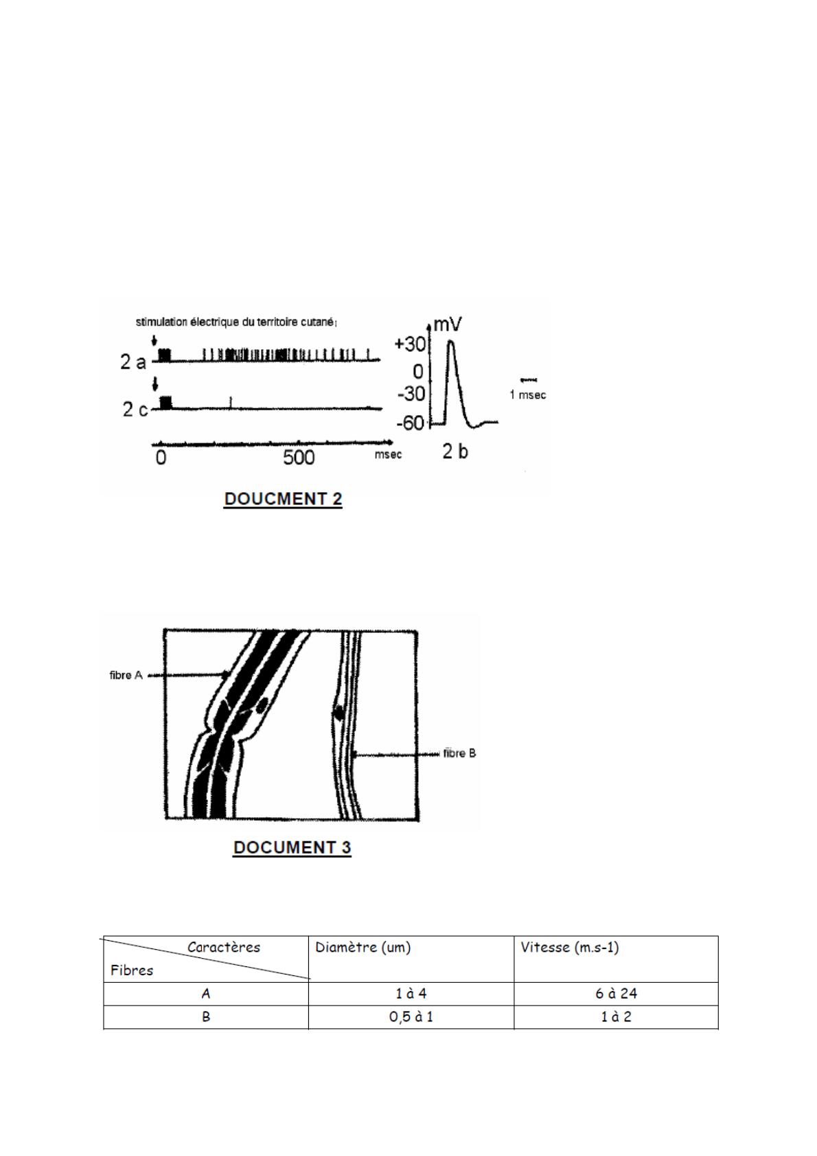 Par ailleurs, on a mesuré le diamètre des fibres nerveuses A et B et calculé la vitesse de