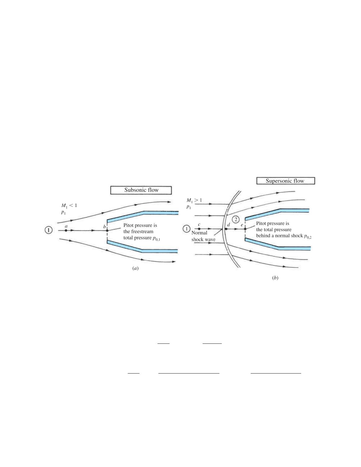 After passing through the shock wave, the flow from point 1 to point 2, located at