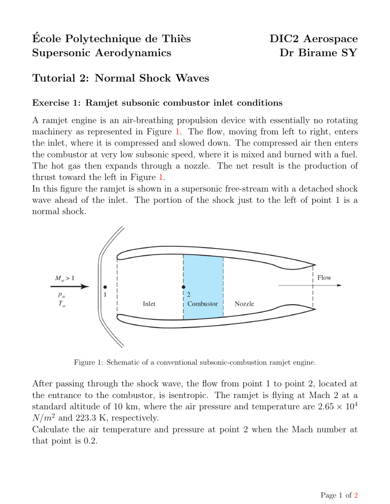 Ecole Polytechnique de Thi`es DIC2 Aerospace