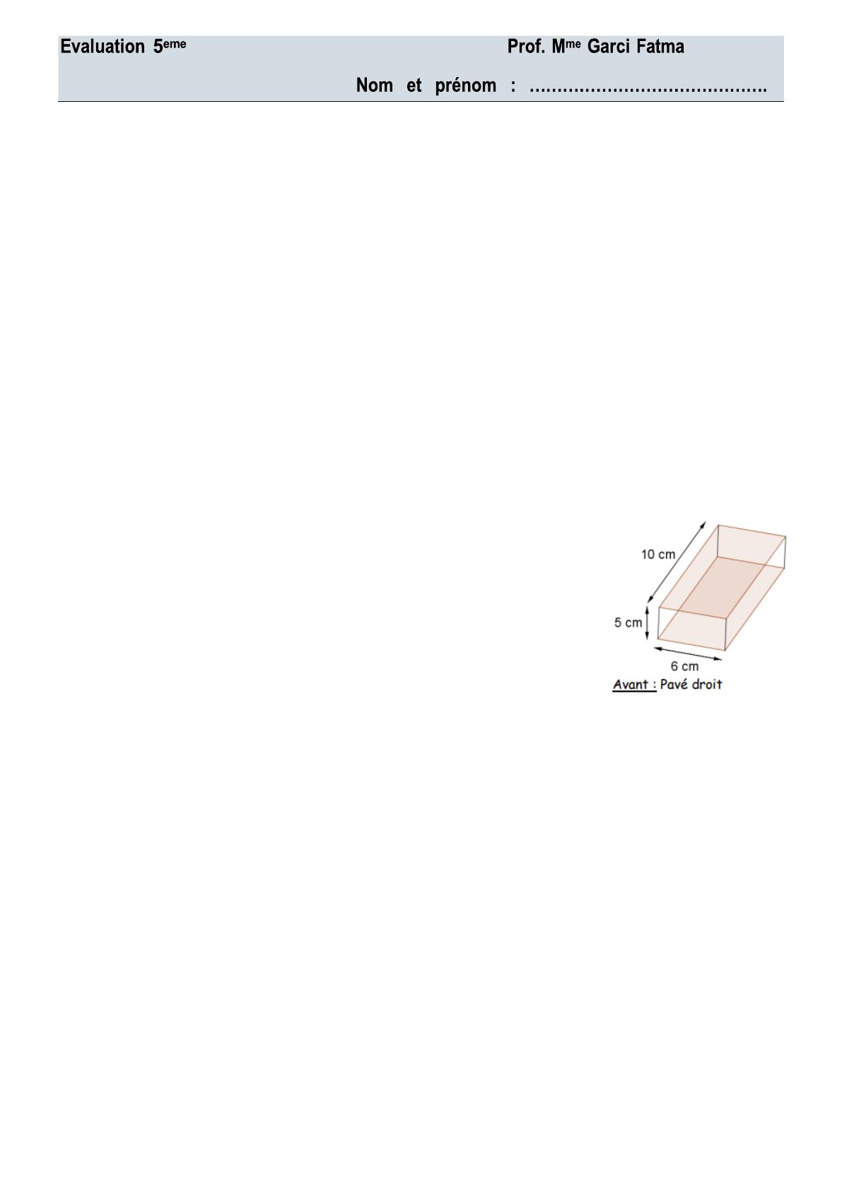 forme d’un pavé droit et n’oublie pas de mettre l’unité :