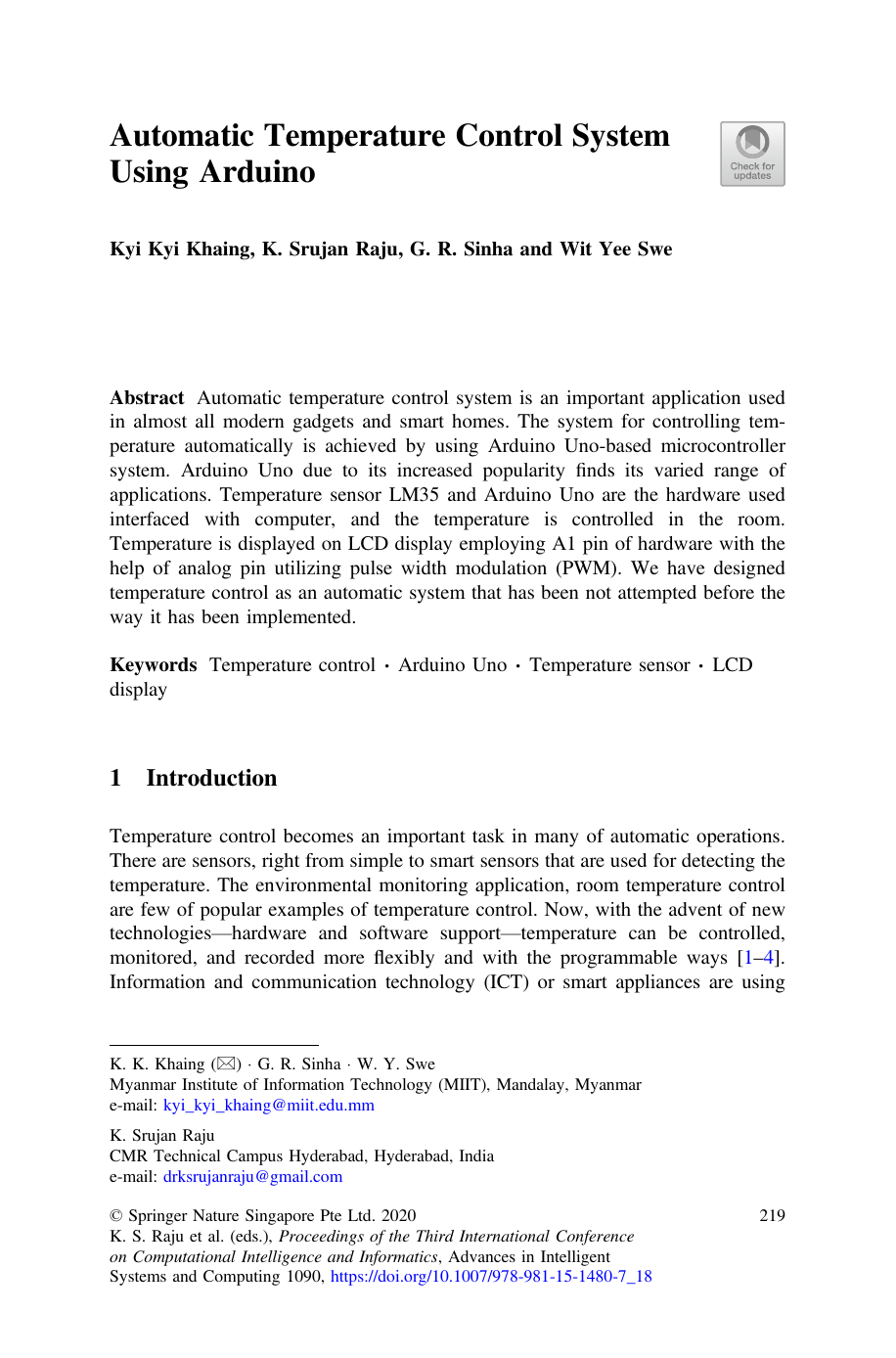 system. Arduino-based work aims at providing a viable solution to the environ-