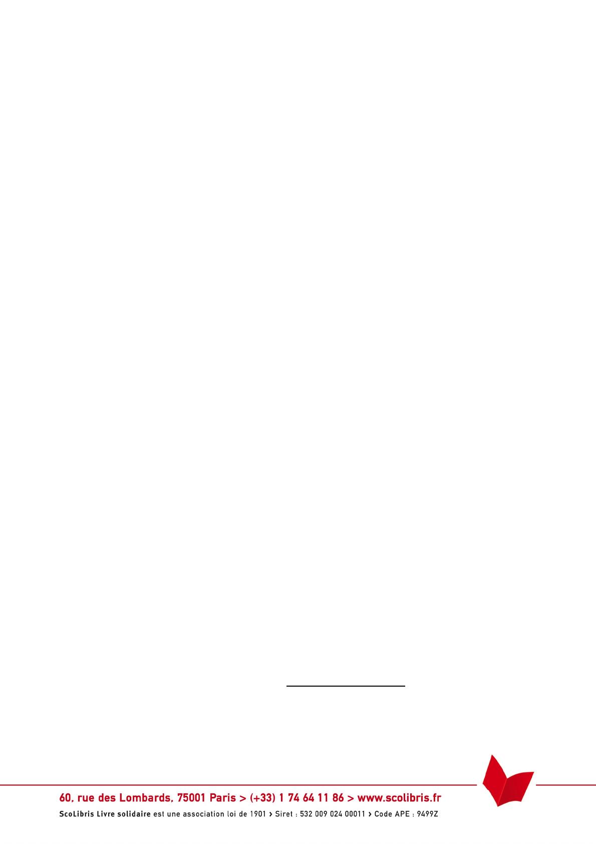 l’association ScoLibris Livre solidaire, avec pour vocation d’appuyer les éditeurs locaux