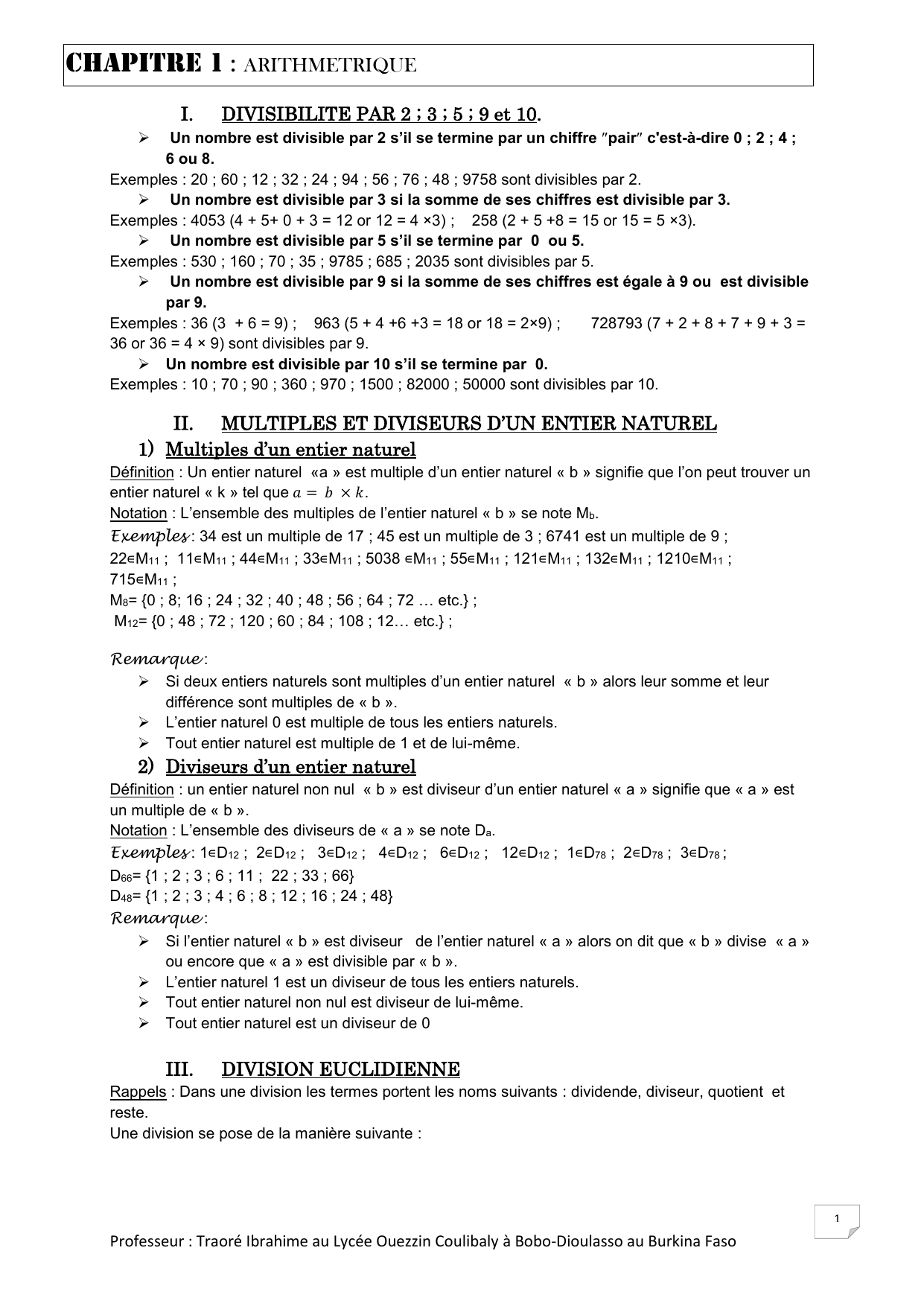 VI. MULTIPLES COMMUNS, DIVISEURS COMMUNS, PPCM, PGCD