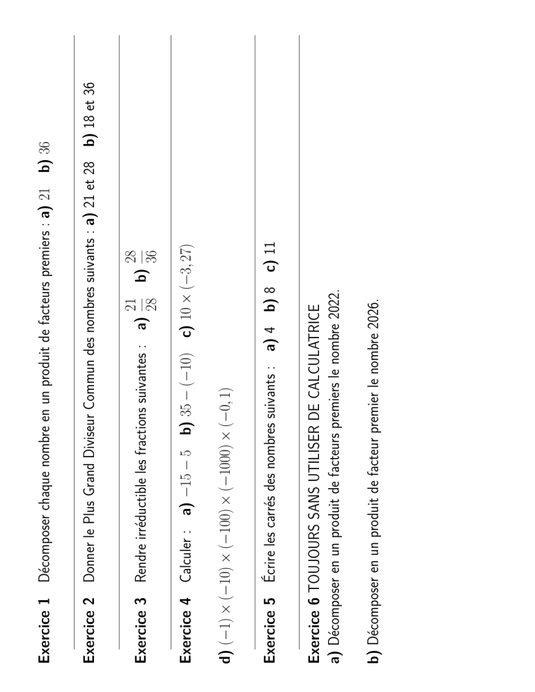 Exercice 3 (2 points) Rendre irréductible les fractions suivantes :