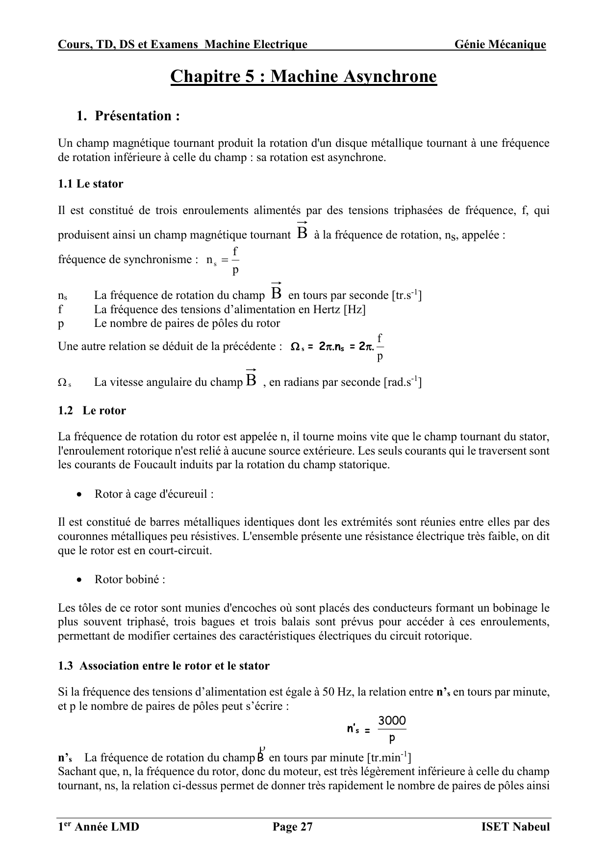 Cours, TD, DS et Examens Machine Electrique Génie Mécanique