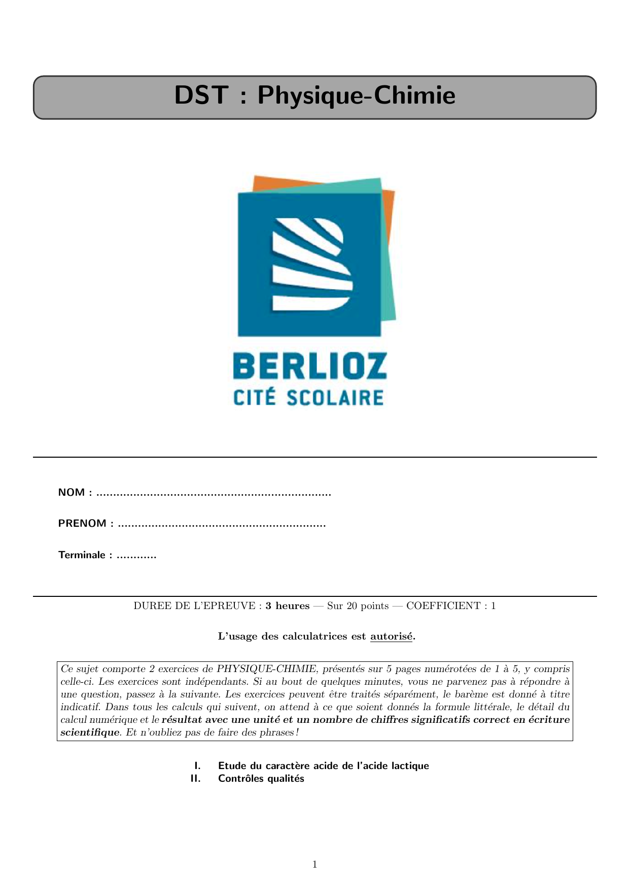 1/ Donner le nom en nomenclature officielle de l’acide lactique.