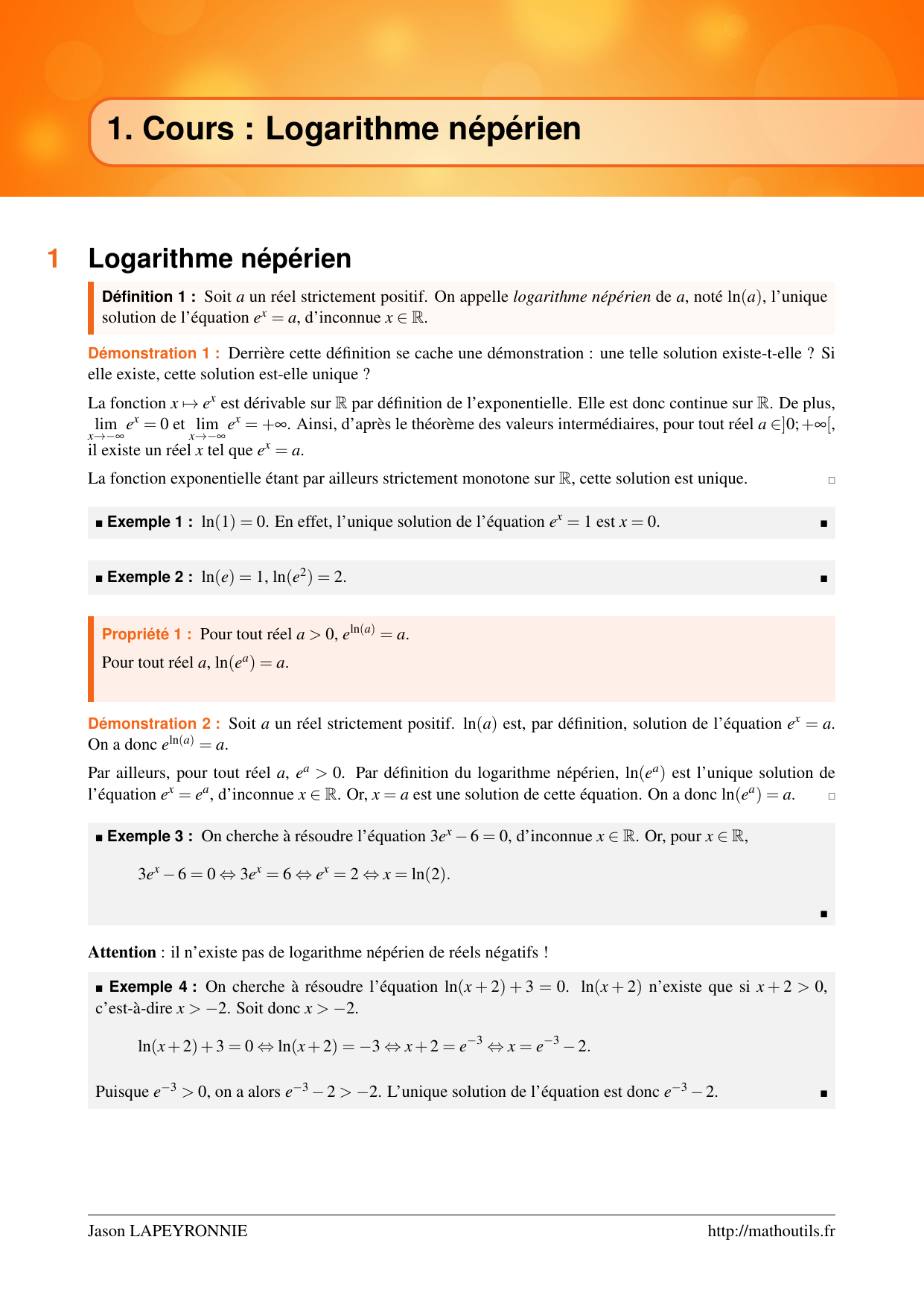 41. Cours : Logarithme népérien
