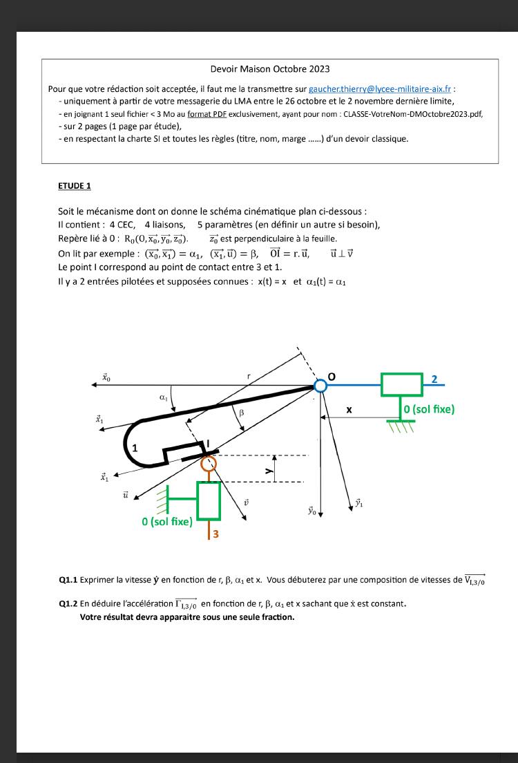 Q1.1 Exprimer la vitesse ẏ en fonction de r, ,