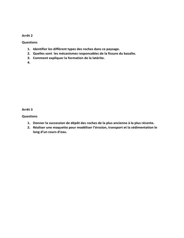 1. Donner la succession de dépôt des roches de la plus ancienne à la plus récente.