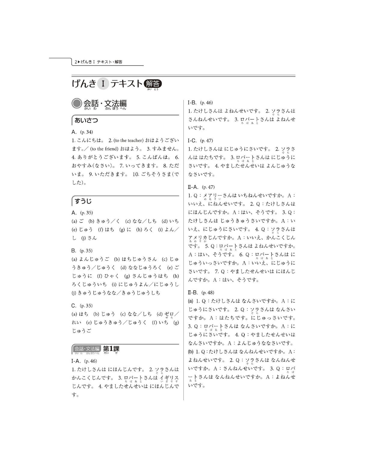 Clé de réponses GENKI: Cours intégré de japonais élémentaire (3e éd.)