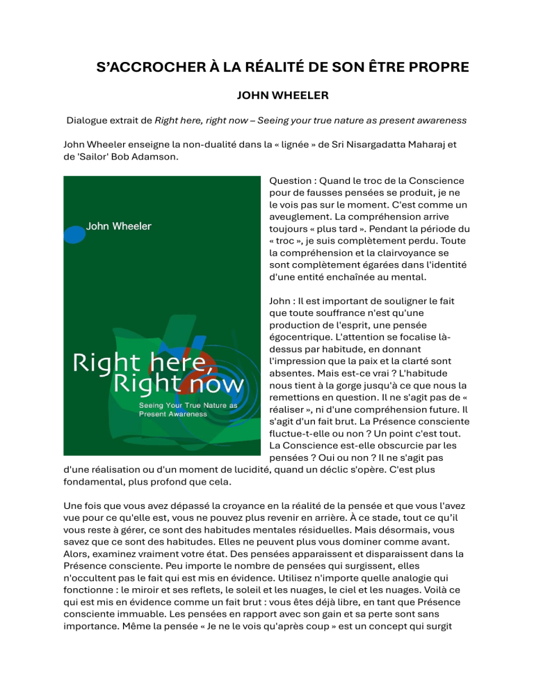 qui surgissent dans une Conscience totalement claire et sans équivoque — maintenant.
