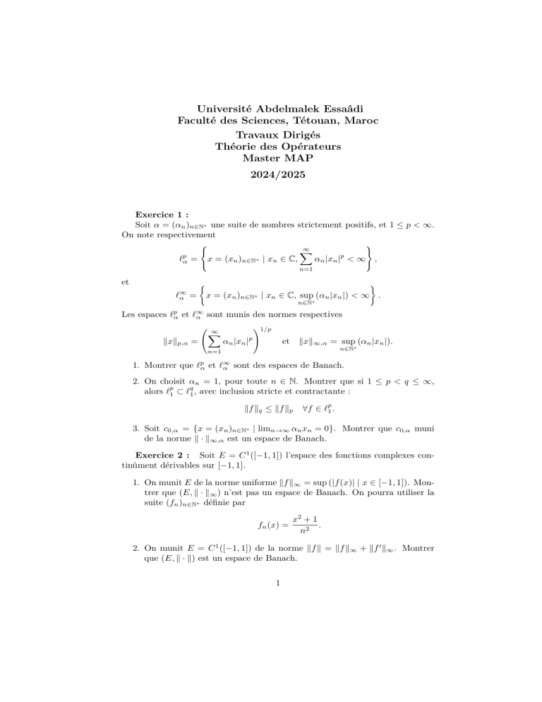 2. Montrer que Tn’est pas continue (on pourra utiliser la suite fn∈E,
