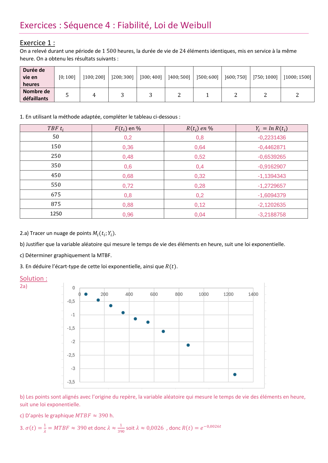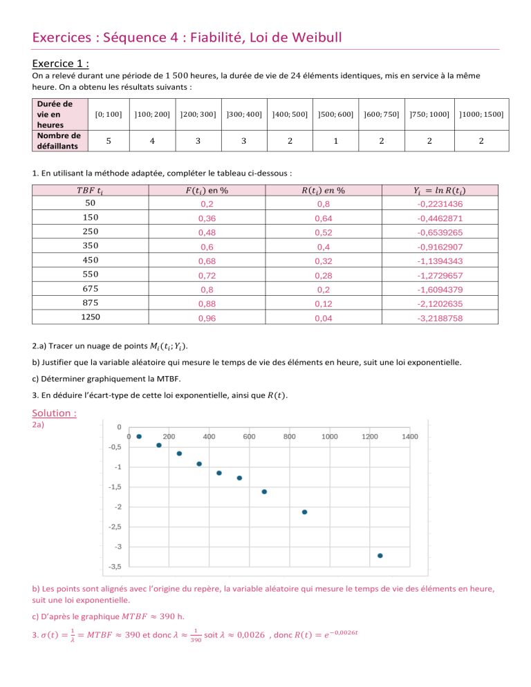 3. Justifier que la variable aléatoire qui mesure le temps de vie des éléments en heure, suit une loi de Weibull et