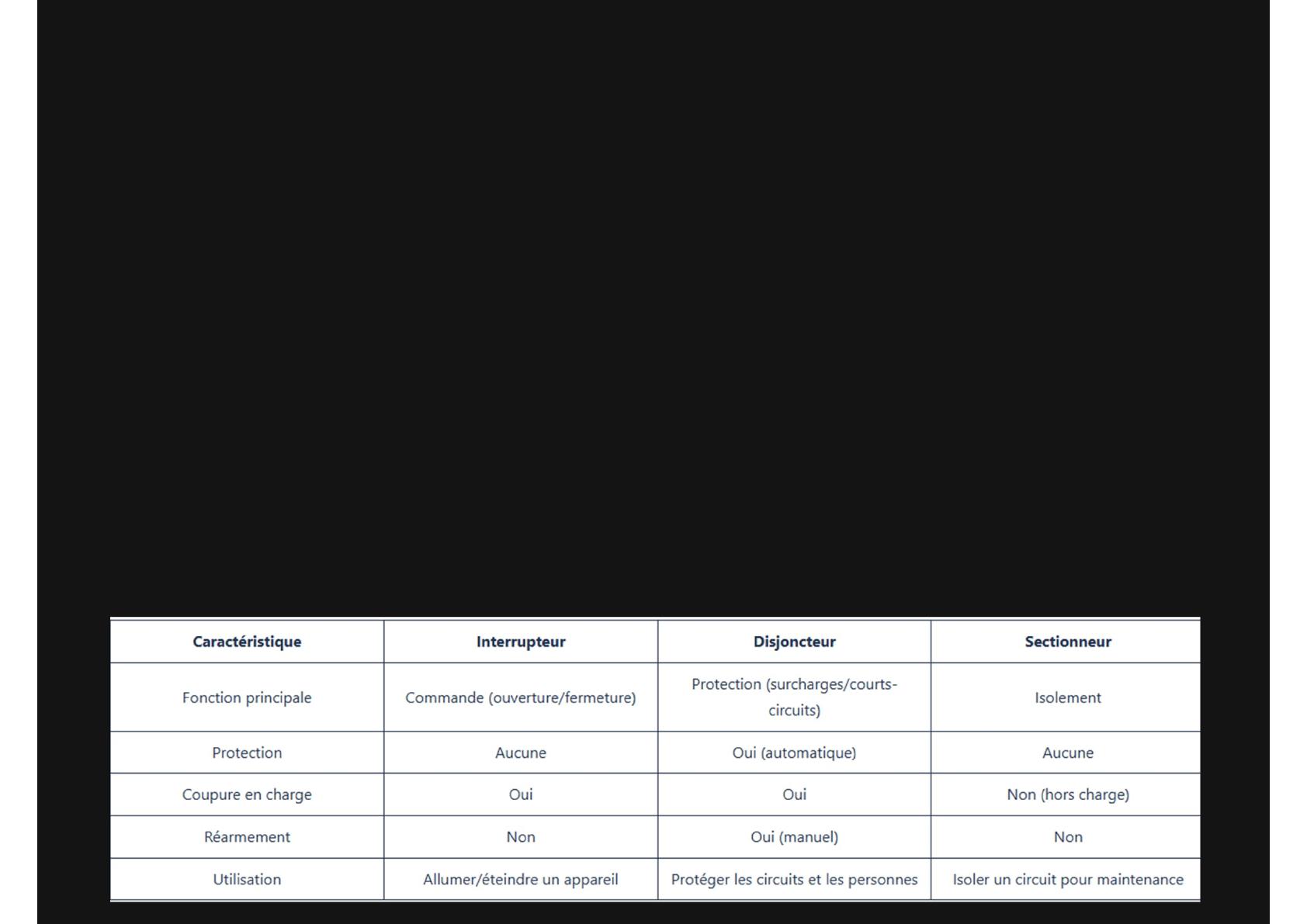 Un sectionneur comme un interrupteur possèdent quant à eux une