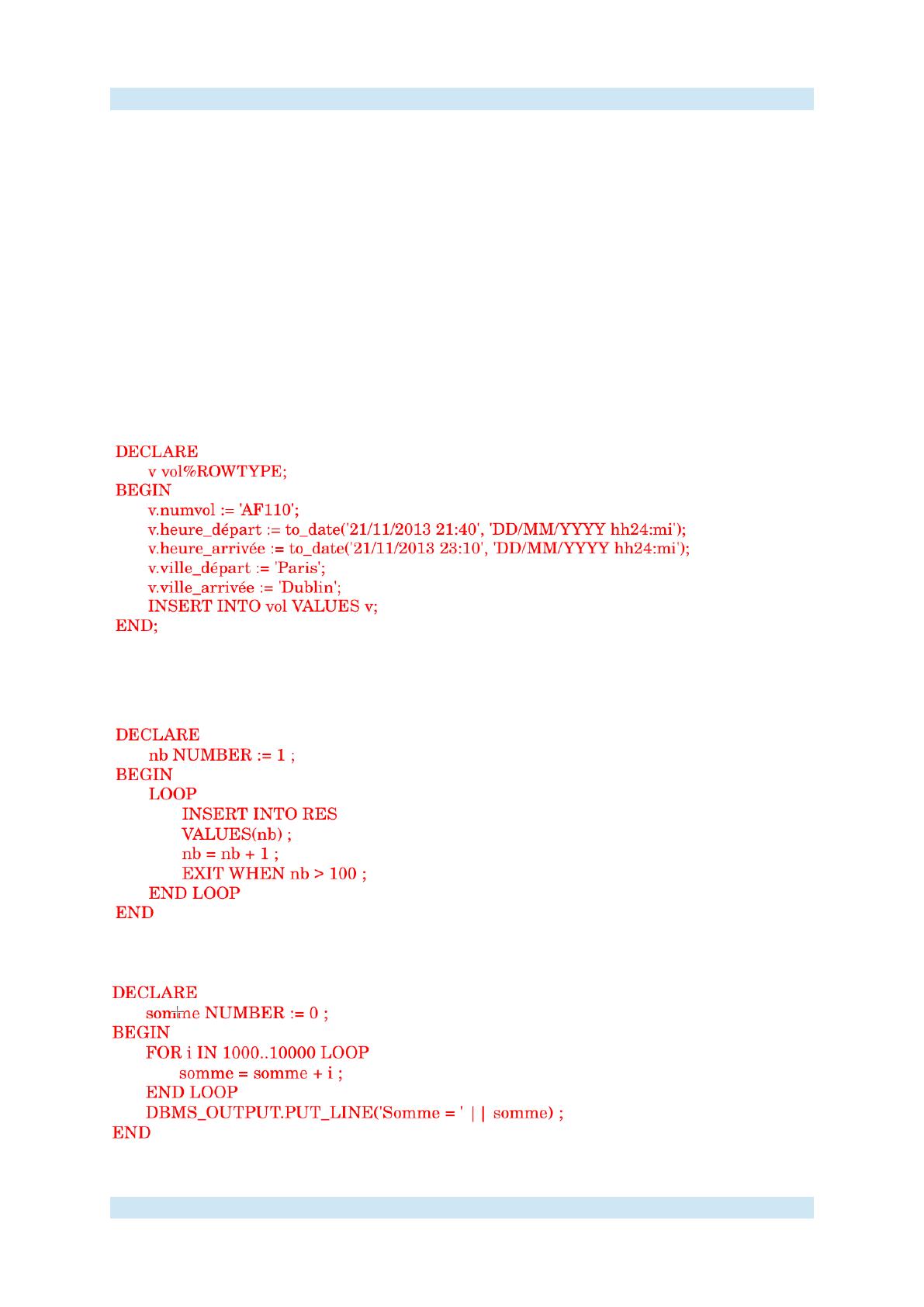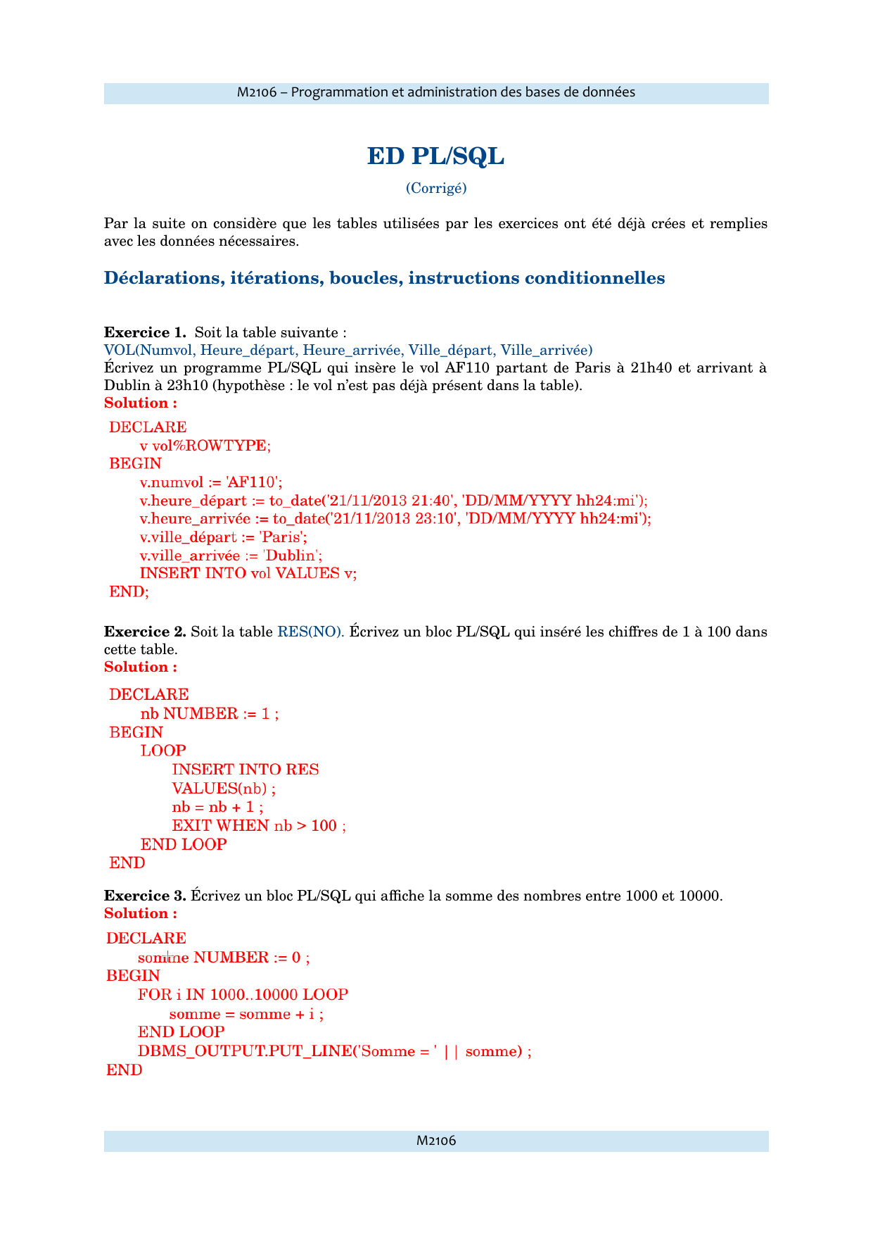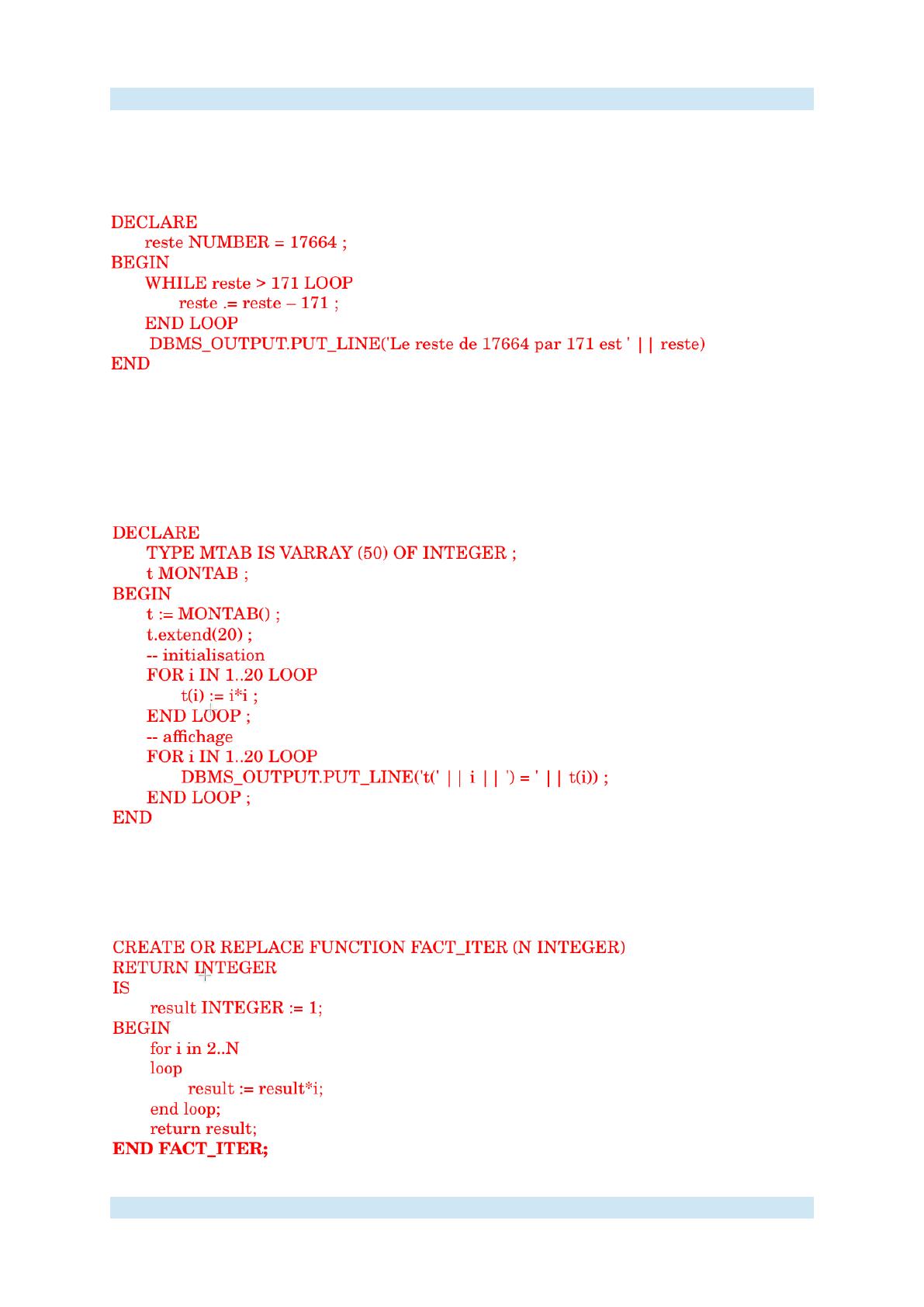 Exercice 10. Soit la relation EMPLOYE de l'exercice précédent. Écrivez un bloc PL/SQL qui affiche