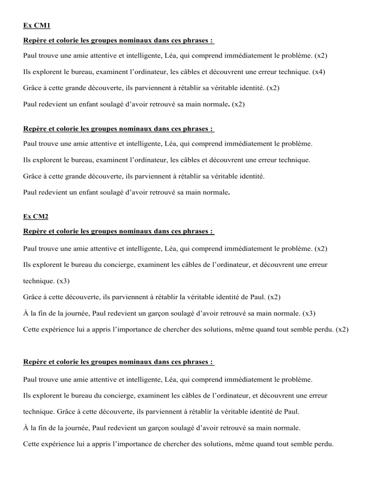 Repère et colorie les groupes nominaux dans ces phrases :