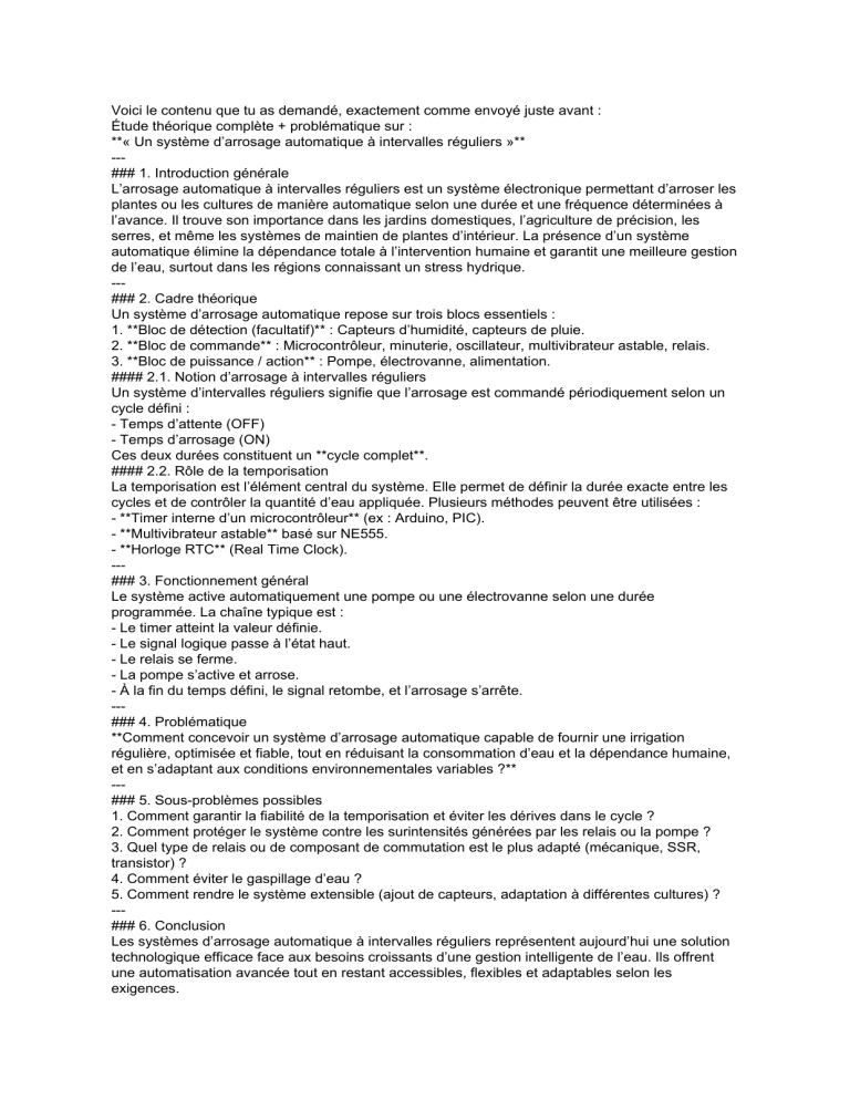 **« Un système d’arrosage automatique à intervalles réguliers »**