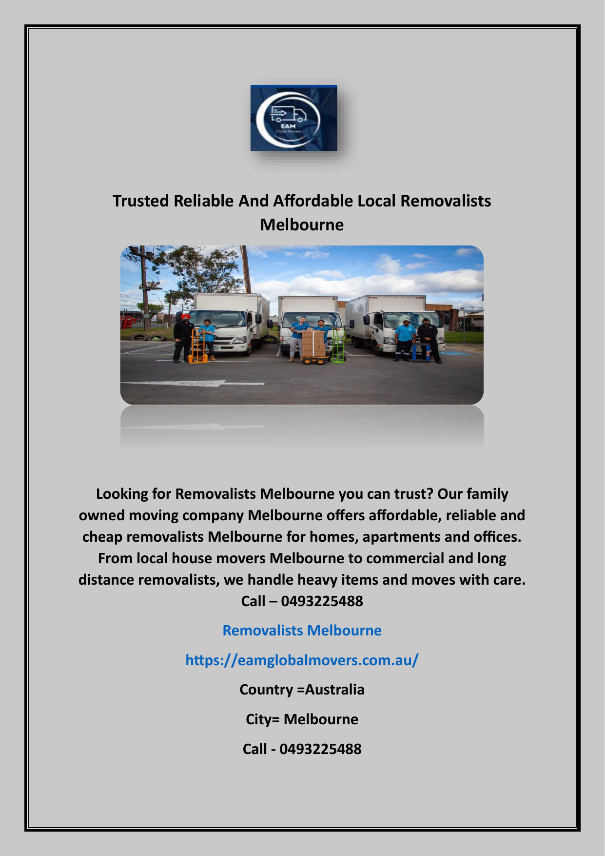 Trusted Reliable And Affordable Local Removalists Melbourne