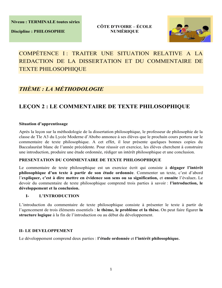 À la fin de la leçon sur le commentaire de texte philosophique, certains élèves de ta classe expriment