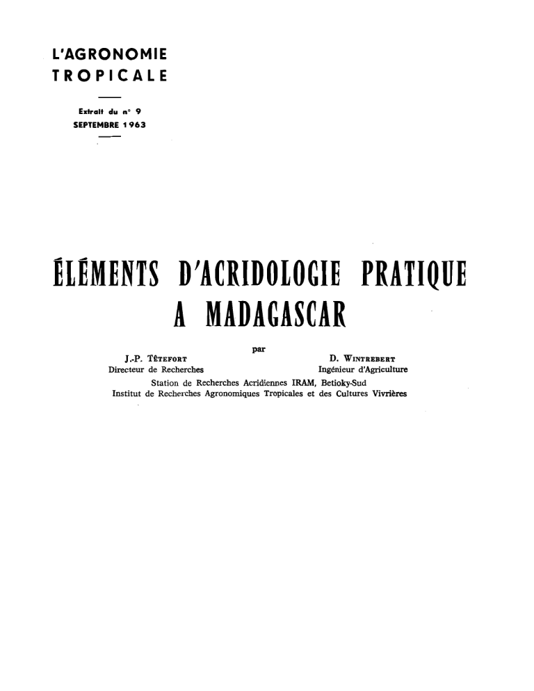 Les auteurs des « Eléments d'Acridologie pratique à Madagascar II ont eu le soin de préciser,