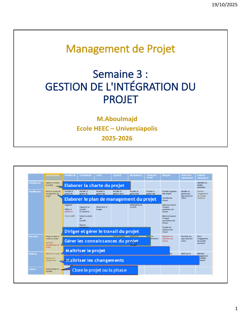 Les processus de gestion de l'intégration du projet sont les suivants: