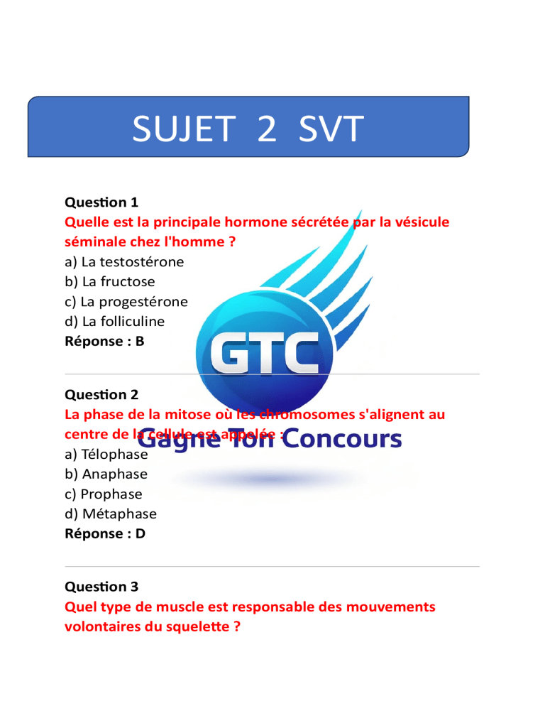 Sujet 2 SVT : Questions et Réponses sur les Sciences de la Vie