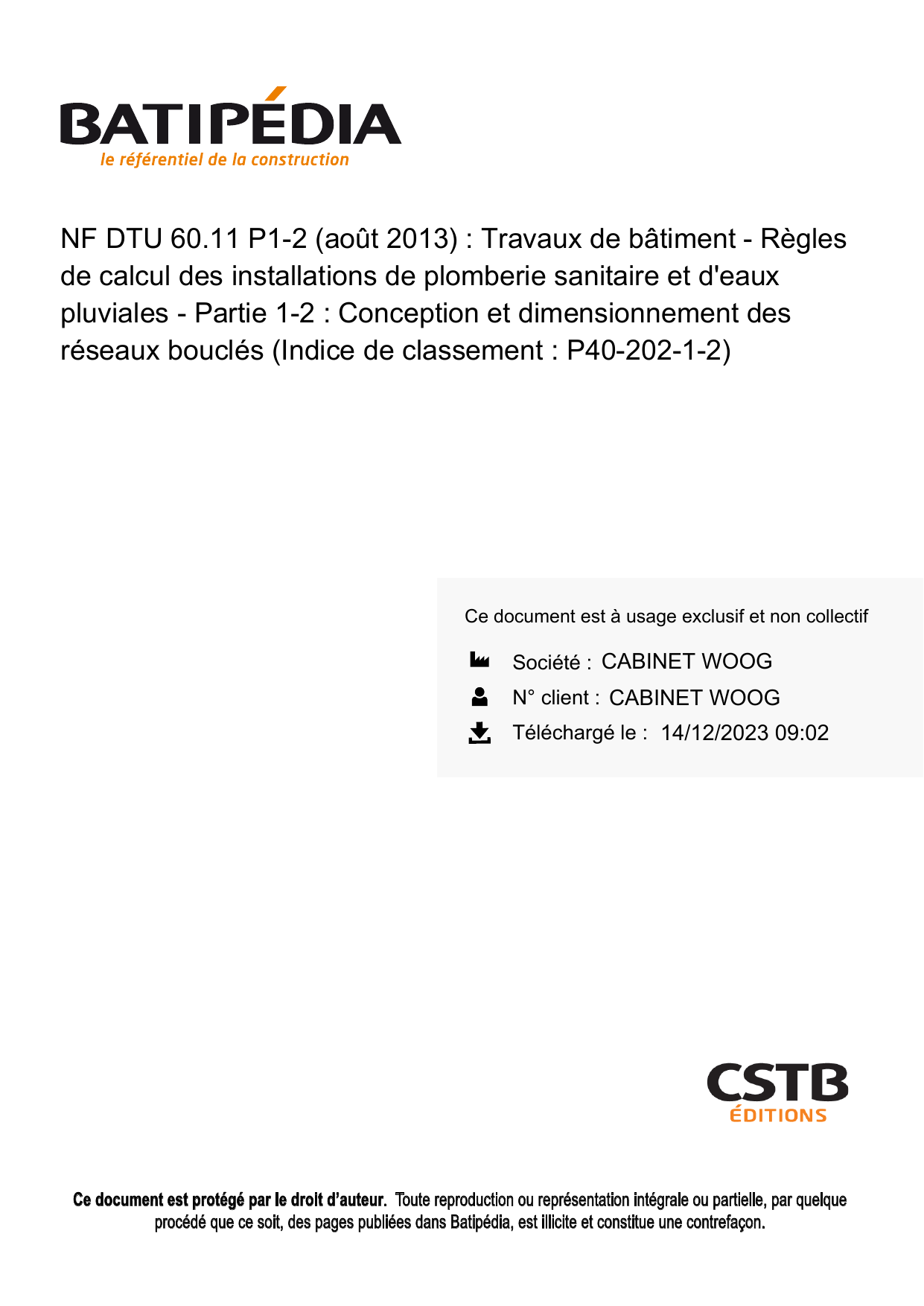 CSTB Editions pour CABINET WOOG le 14/12/2023 09:02