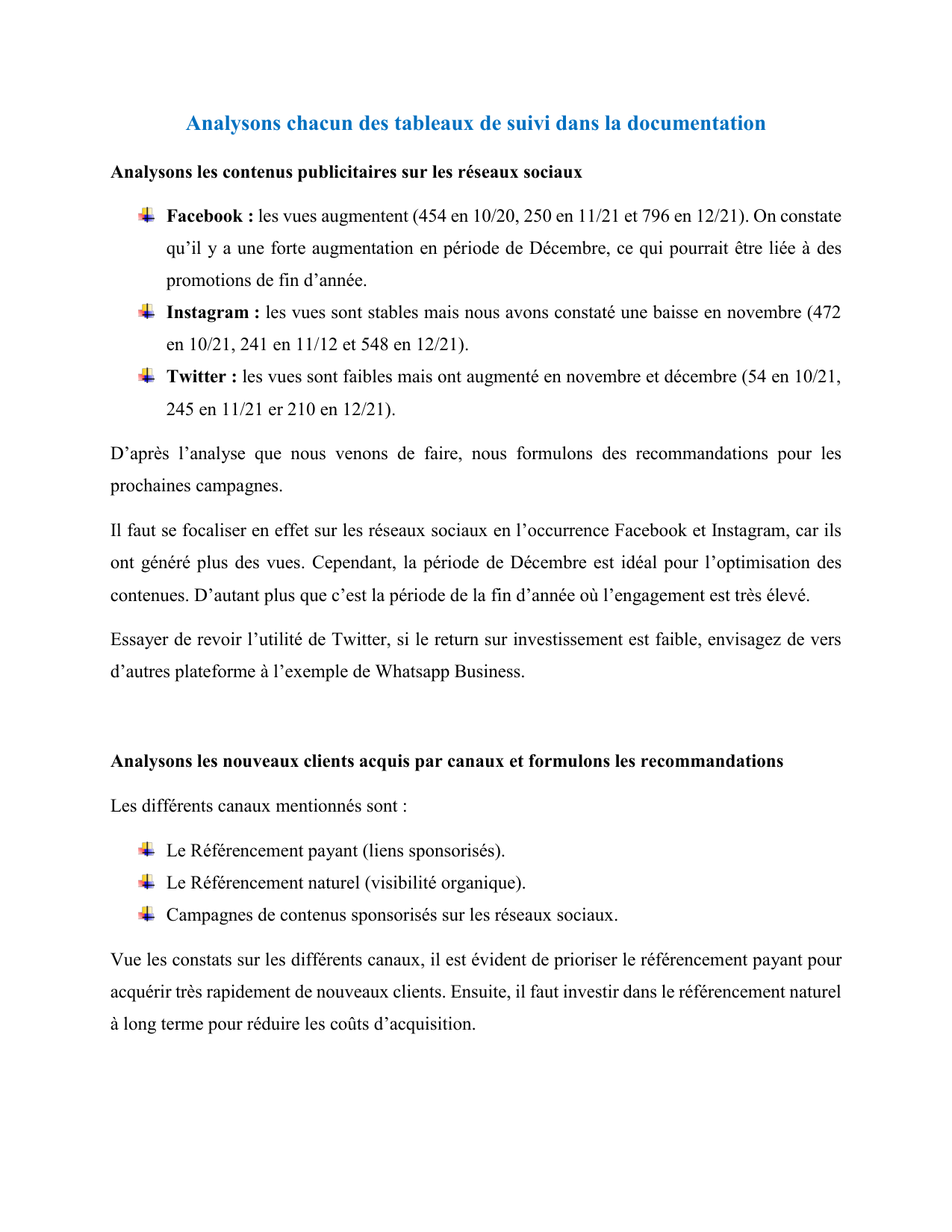 Analysons les nouveaux clients acquis par canaux et formulons les recommandations