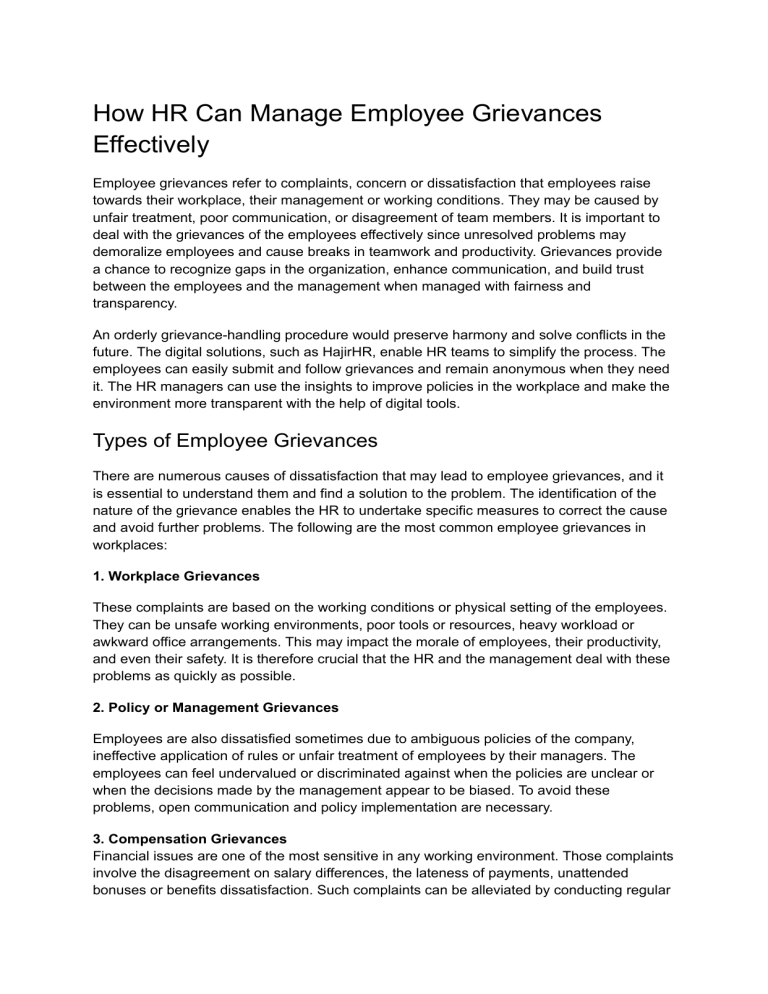 There are numerous causes of dissatisfaction that may lead to employee grievances, and it