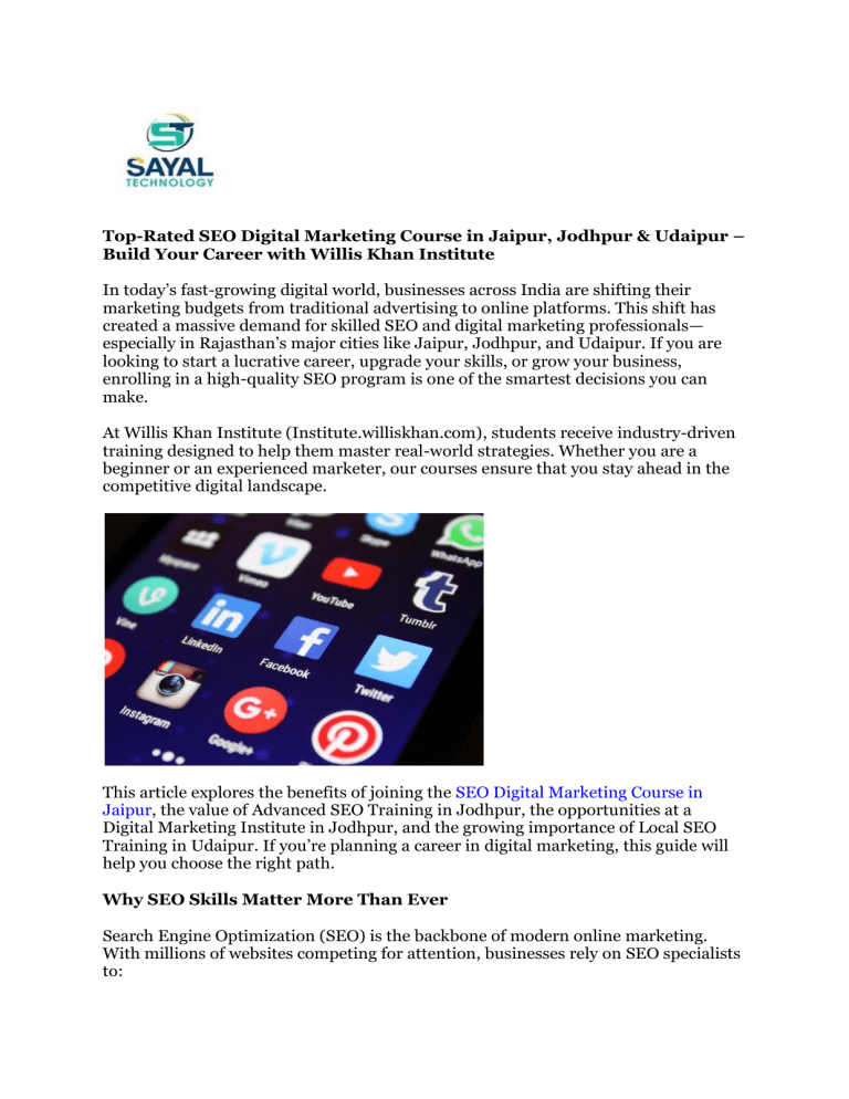 Jaipur, the value of Advanced SEO Training in Jodhpur, the opportunities at a