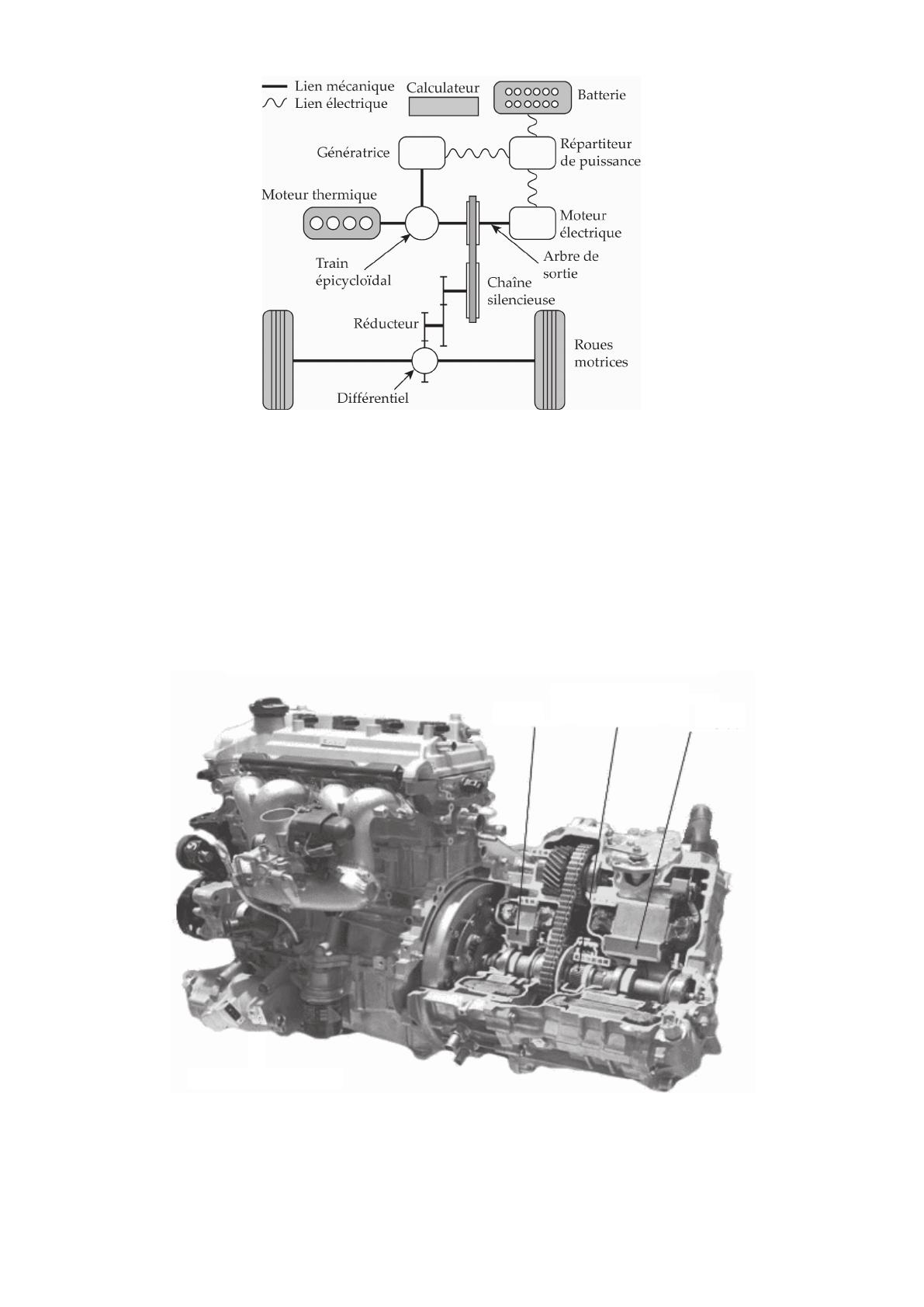 La puissance en sortie du moteur thermique est transmise, grâce au train épicycloïdal, à la chaîne de
