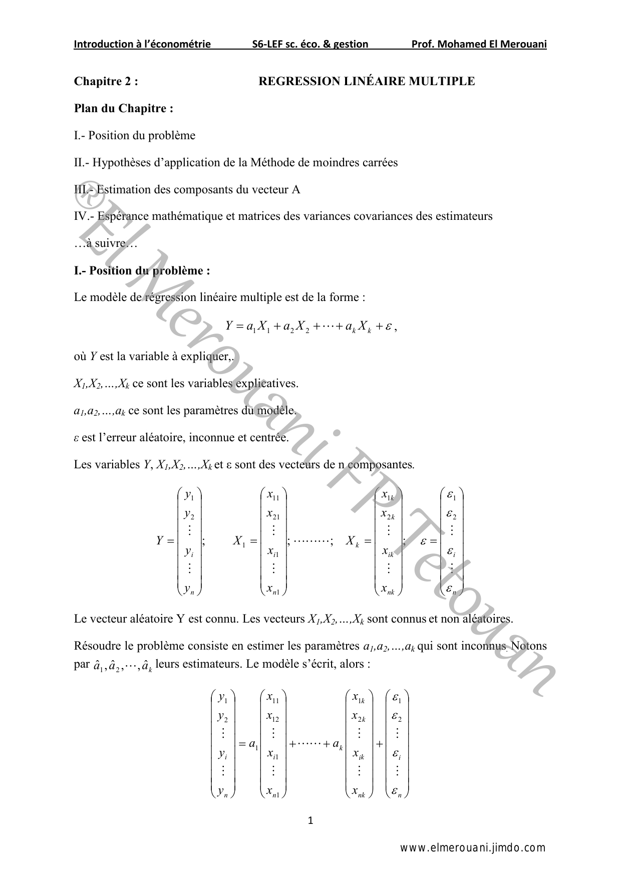 Introduction à l’économétrie S6-LEF sc. éco. & gestion Prof. Mohamed El Merouani