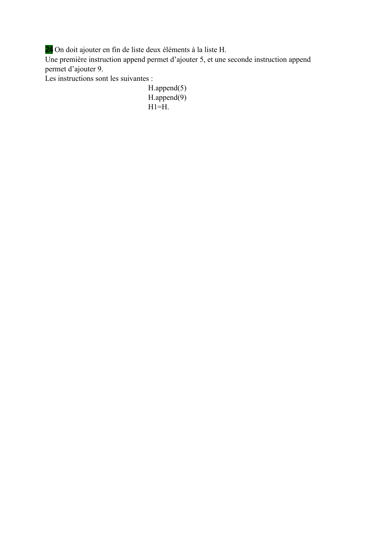 24 On doit ajouter en fin de liste deux éléments à la liste H.