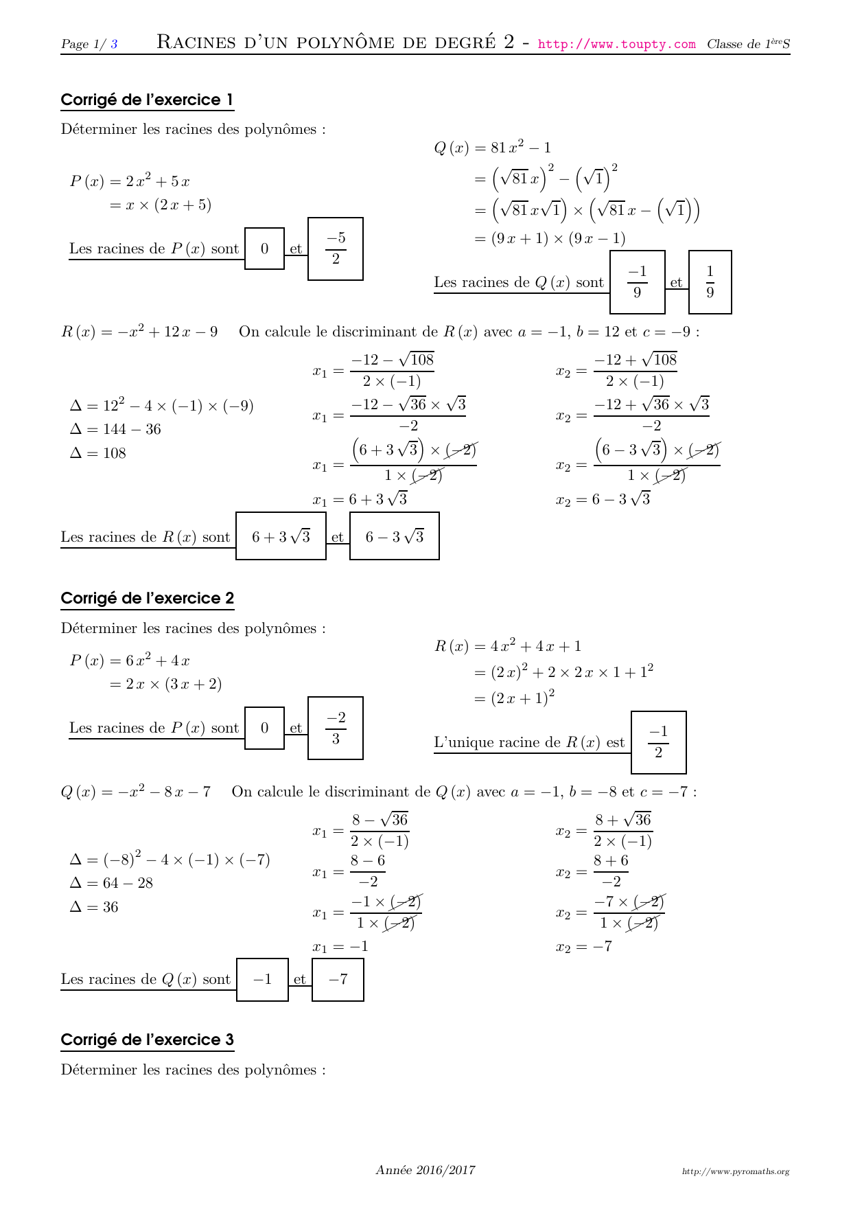 Page 1/ 3Racines d’un polynôme de degré 2 - http://www.toupty.com Classe de 1èreS