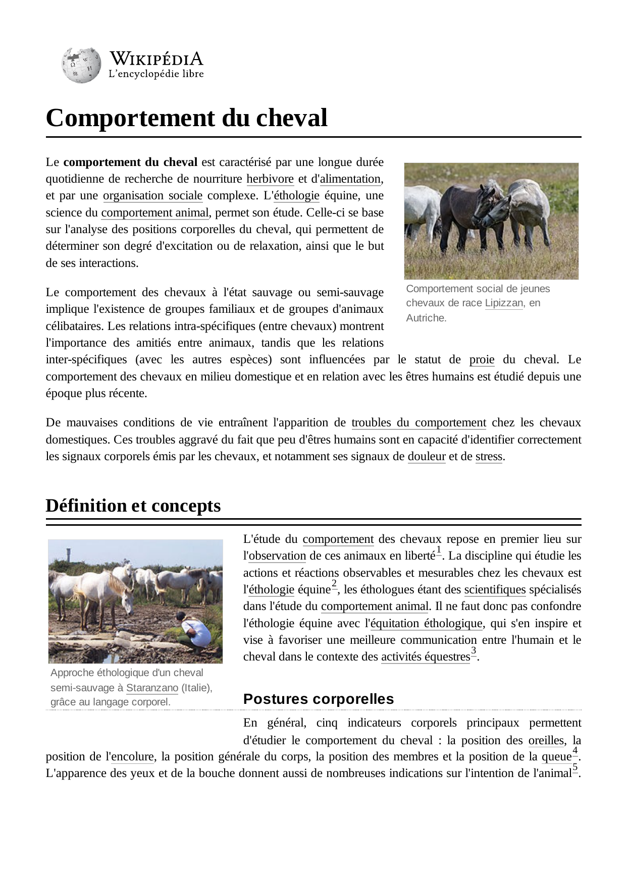 serait cependant erroné d'effectuer une analogie systématique entre le comportement du cheval et celui de