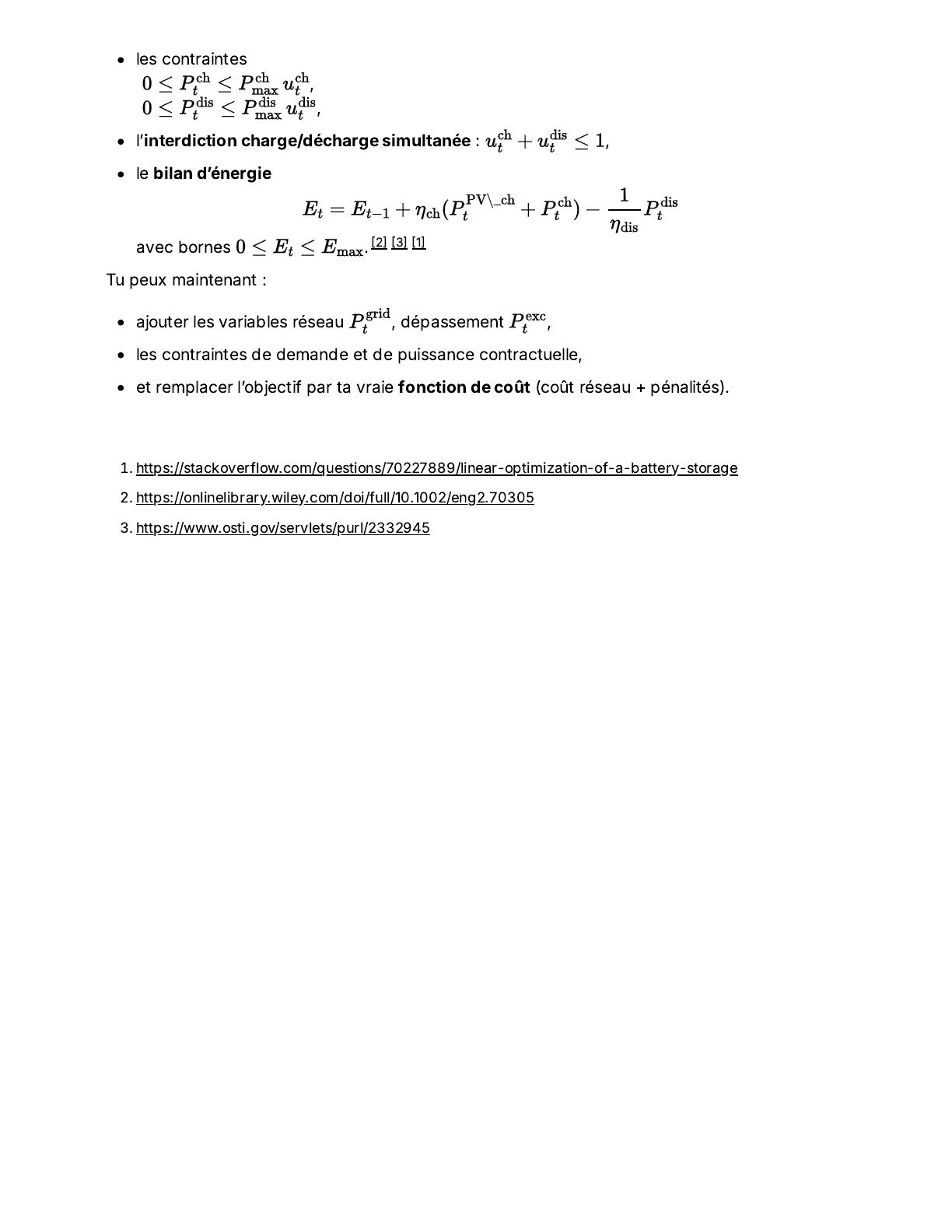 model = pl.LpProblem("Gestion_Batterie_PV_Reseau", pl.LpMinimize)